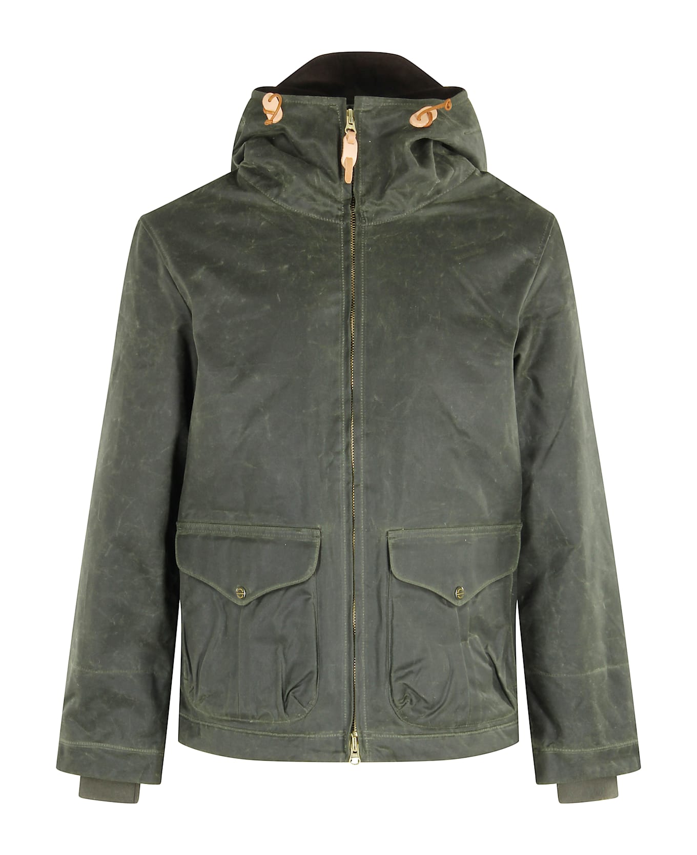 Jacket - Manifatture Ceccarelli - Dark green color - Water-repellent waxed cotton fabric - Teddy lining - Hood - Side pockets with flap and button - Front zipper closure