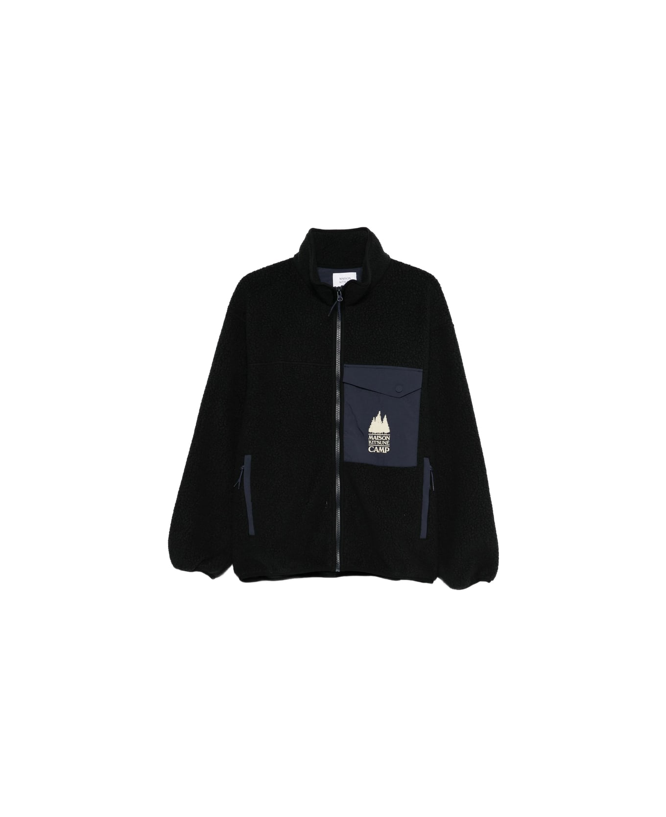 black chest pocket zip fastening long sleeves straight hem tonal stitching