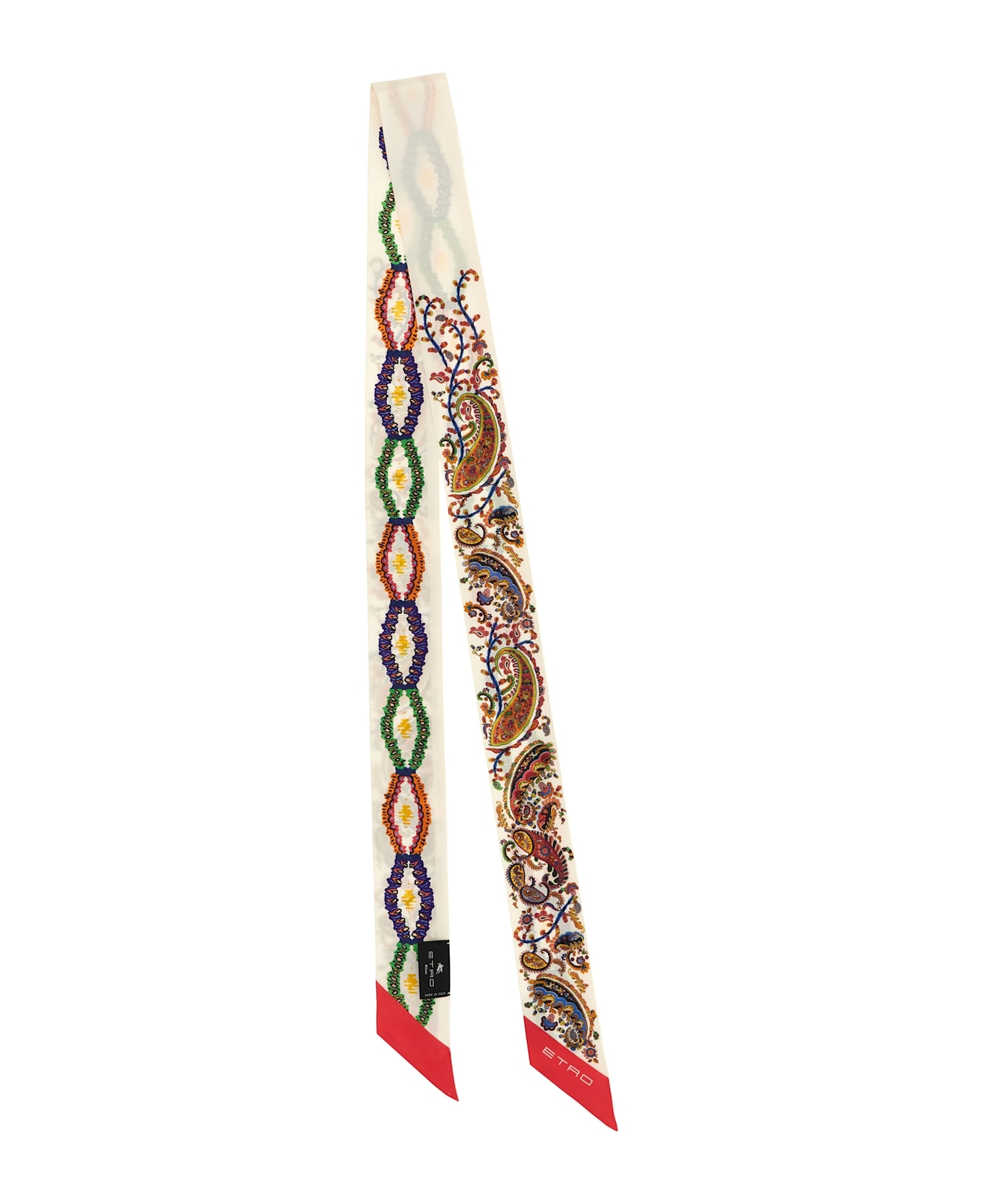 'Paisleyna' pure silk twill scarf with a floral Paisley pattern side and a geometric pattern inspired by medallions. Composition: 100% silk