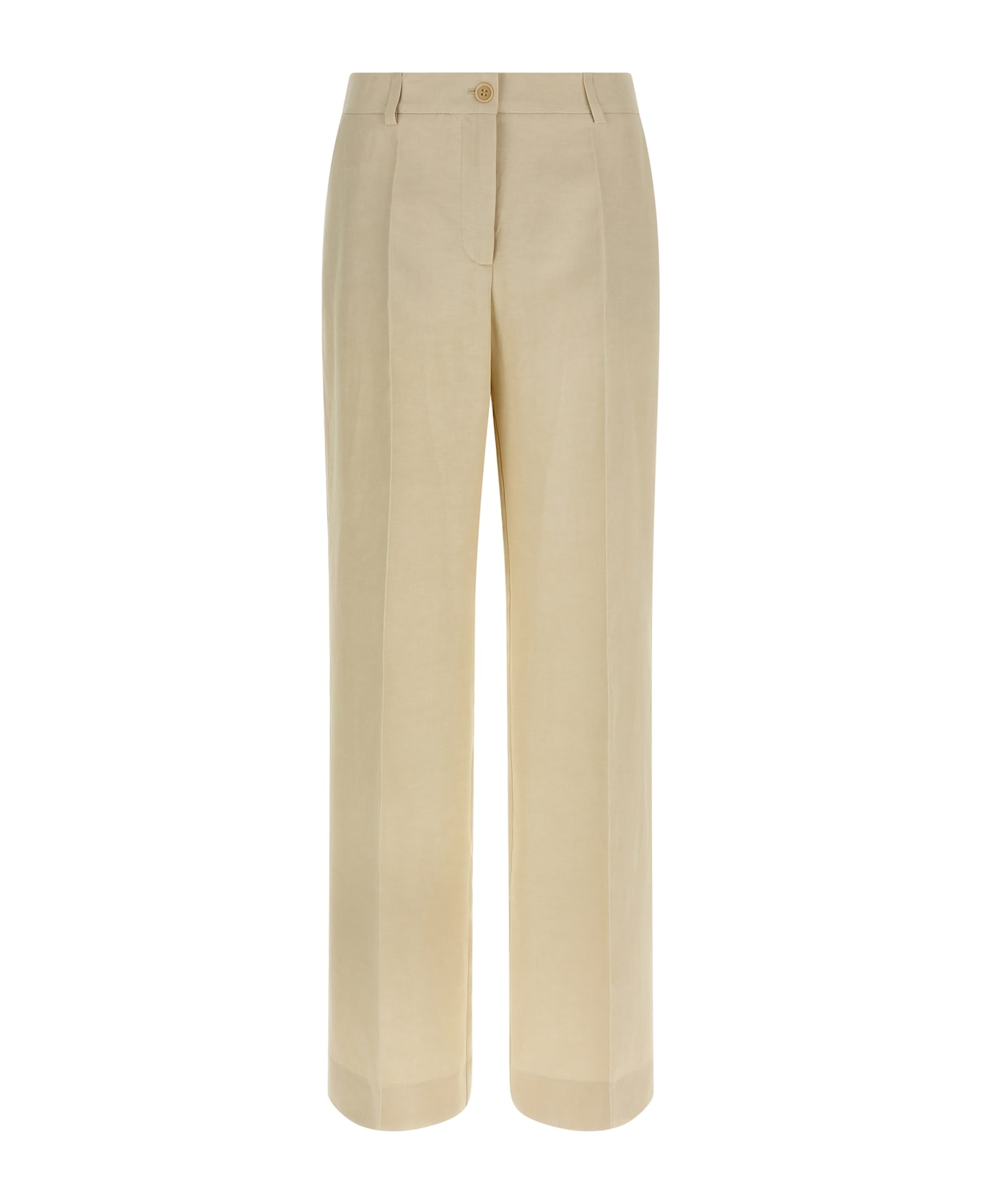 'Raisa26' viscose and linen blend trousers, palace style, stretched pleat, wide leg, front zip and button closure, pockets. Composition: 72% viscose, 28% linen