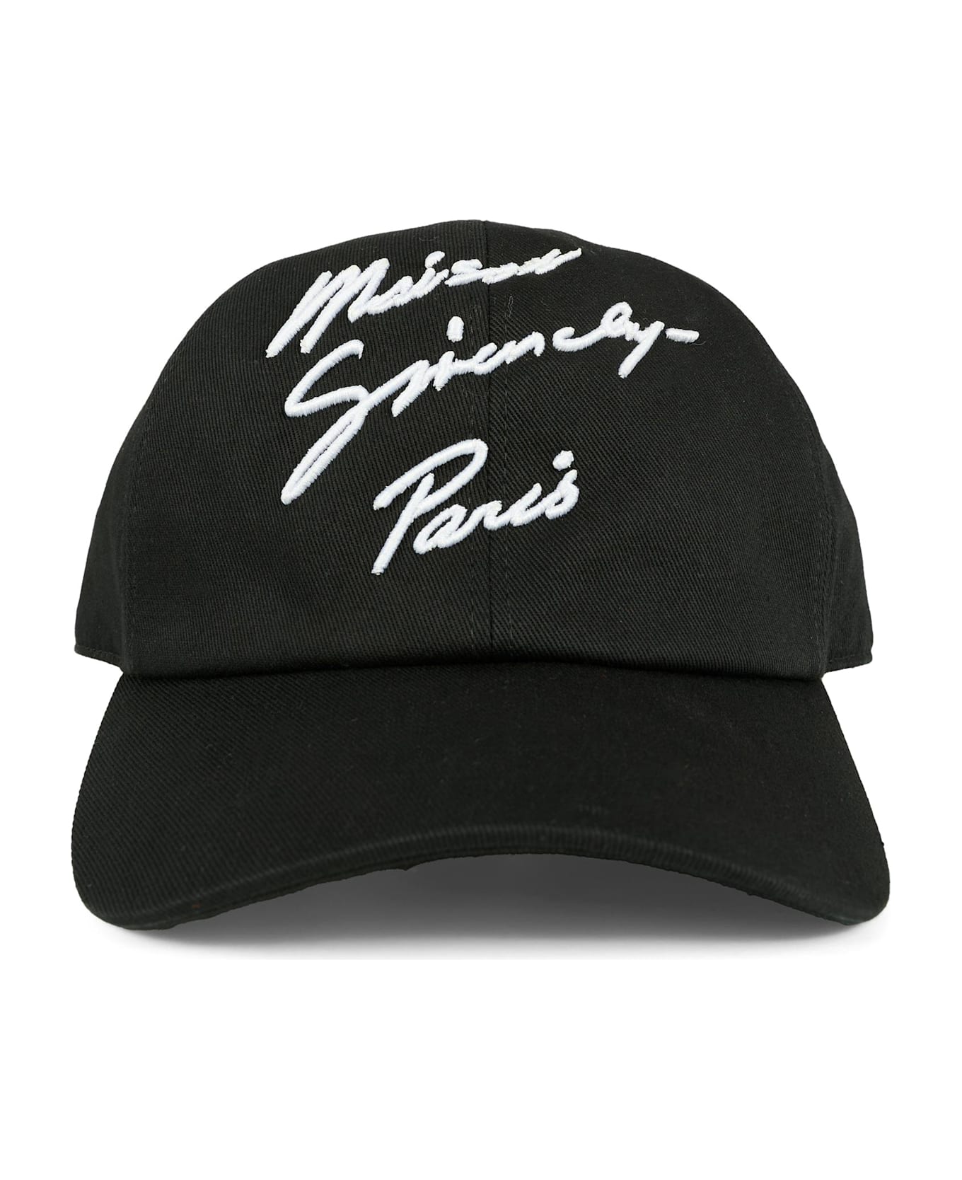 Black hat from the luxury brand Givenchy Kids, made of cotton twill, with visor and hook and loop closure on the back. It is embellished with an embroidered logo on the front.
