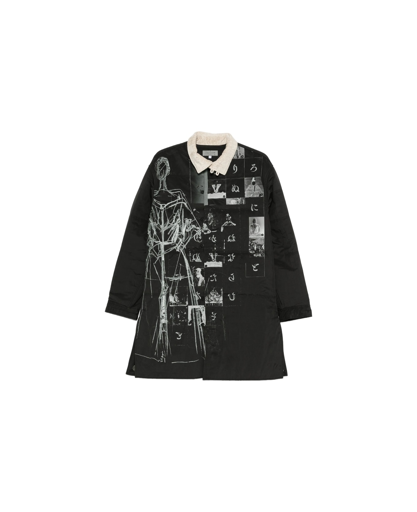 black all-over print front button fastening