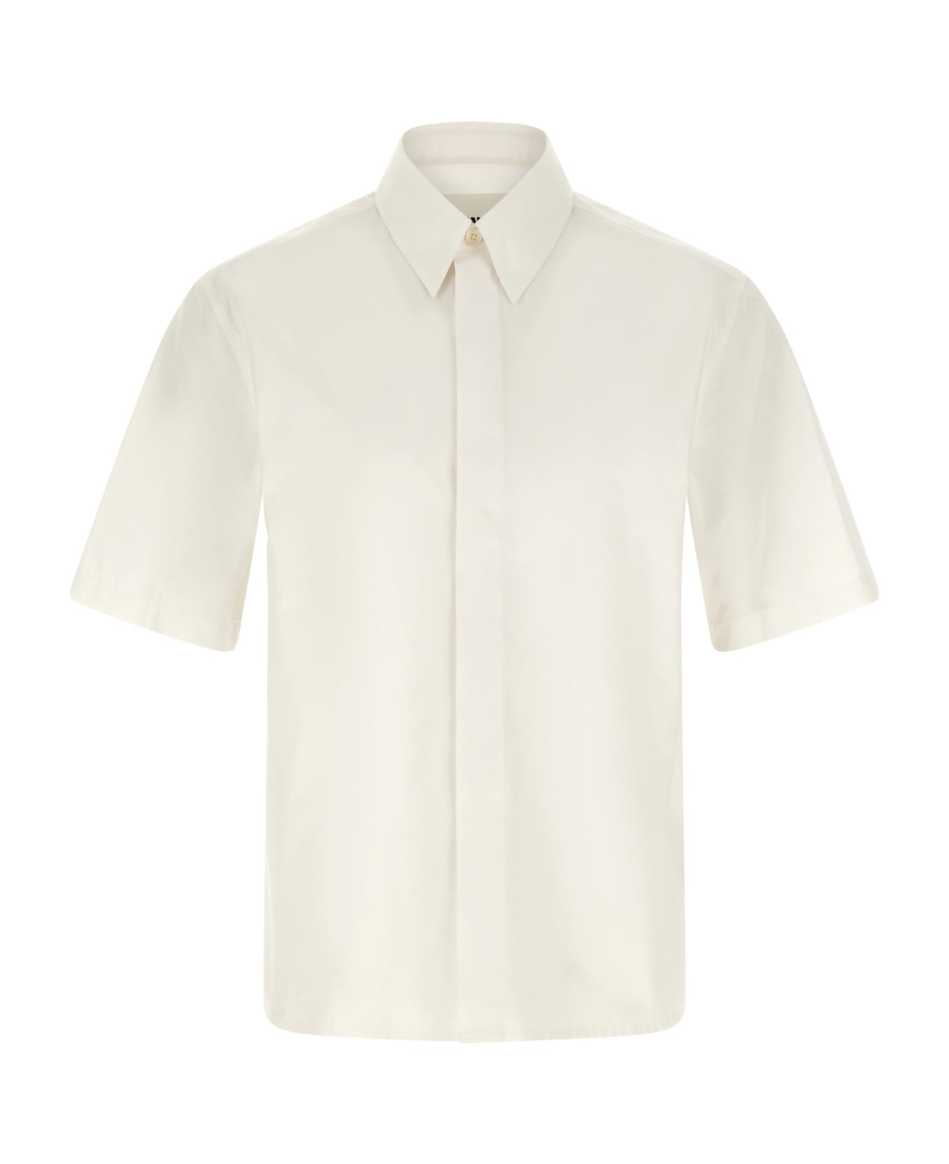 Cotton poplin shirt with tone-on-tone logo embroidery, concealed front button closure, and short sleeves. Composition: 100% cotton