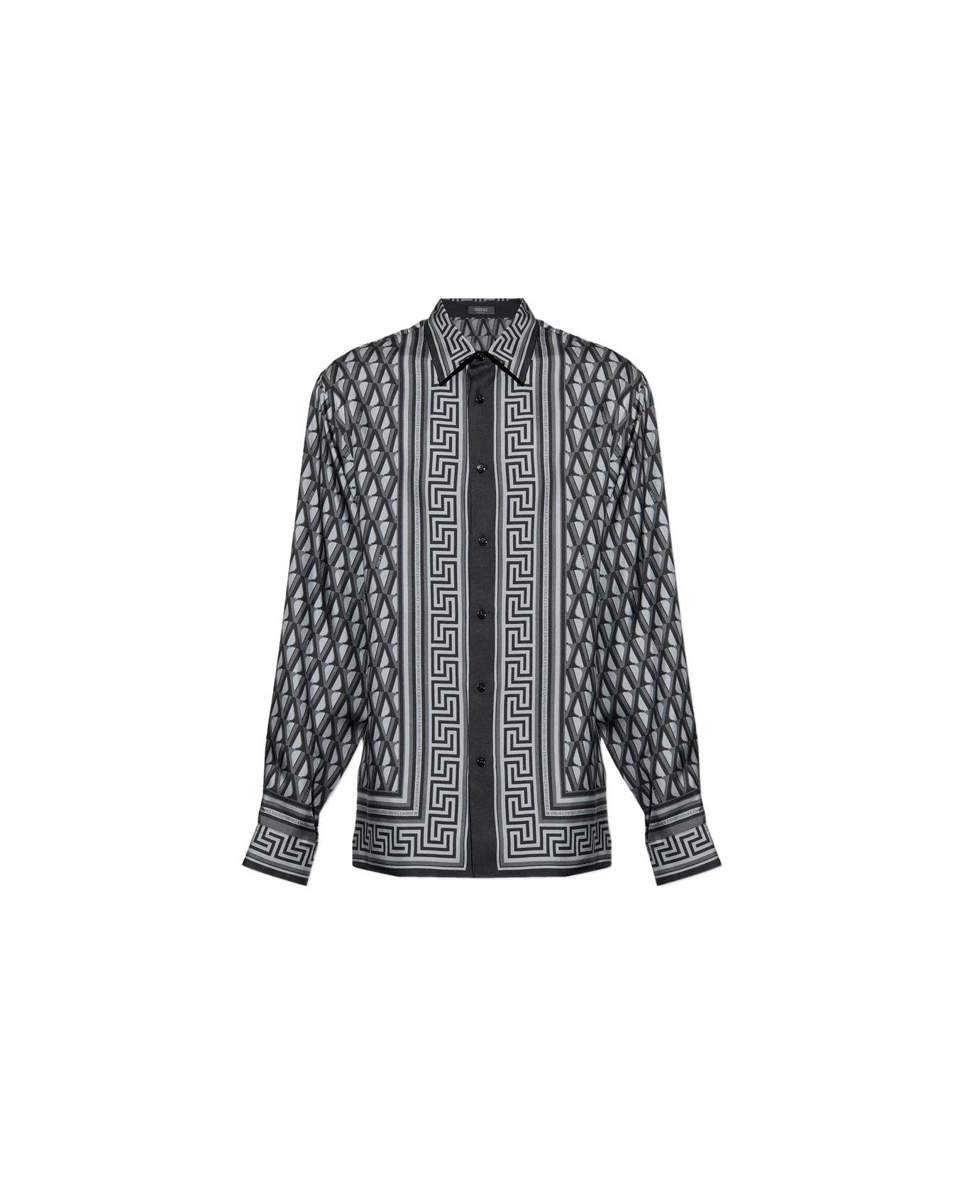 grey geometric pattern button fastening long sleeves buttoned cuffs silk