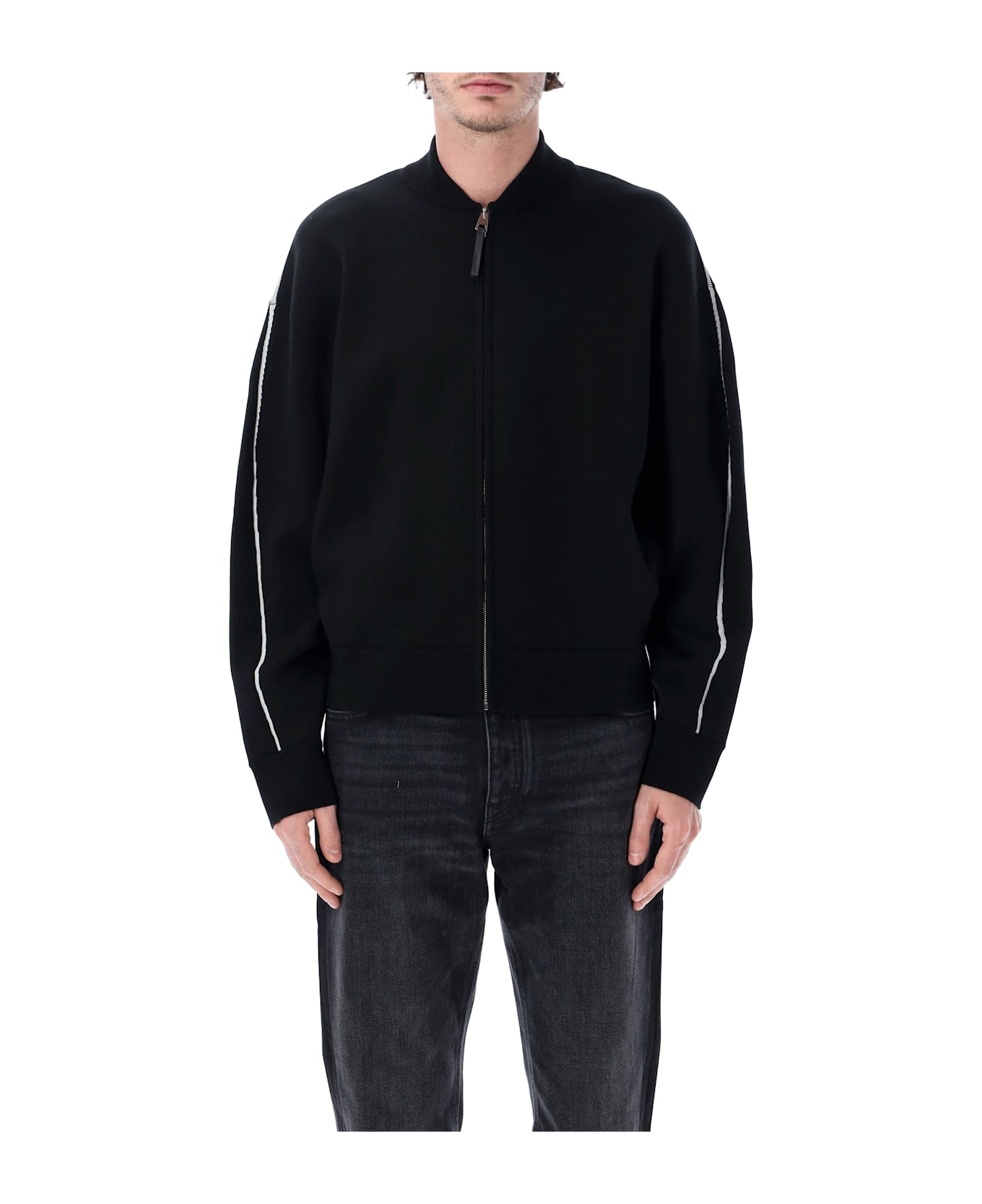 This Givenchy Zip-up Jacket Blends Contemporary Elegance With A Sporty Attitude. Crafted From A Refined Wool-blend Knit, It Features A Clean, Streamlined Silhouette Enhanced By Subtle Contrast Piping Along The Sleeves. The Bold Givenchy Paris Lettering On The Back Adds A Distinctive Signature Touch, Balancing Understated Design With Graphic Impact. Wool-blend Knit Fabric