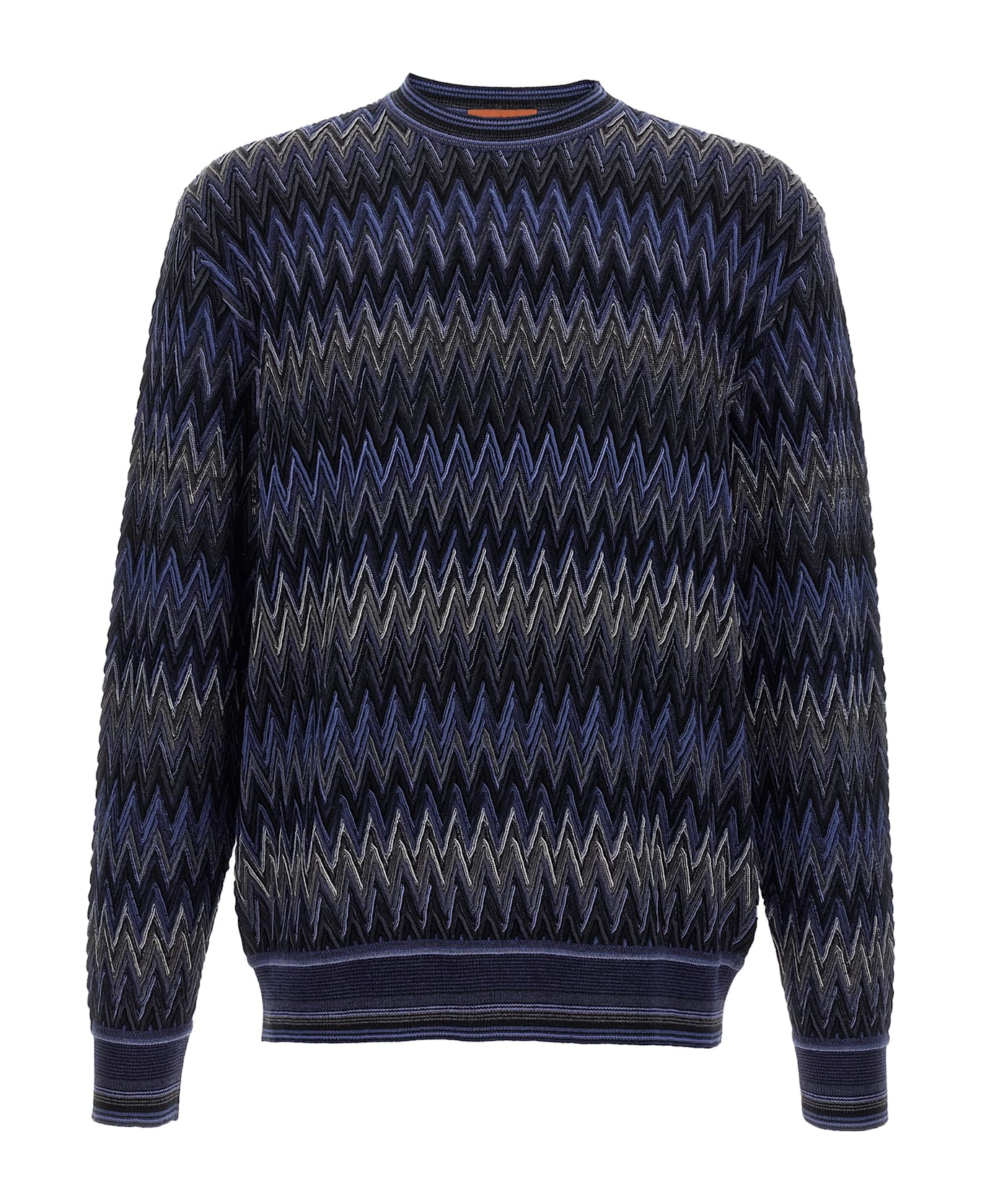 Zigzag pattern wool sweater, crew neck, long cuffed sleeves.