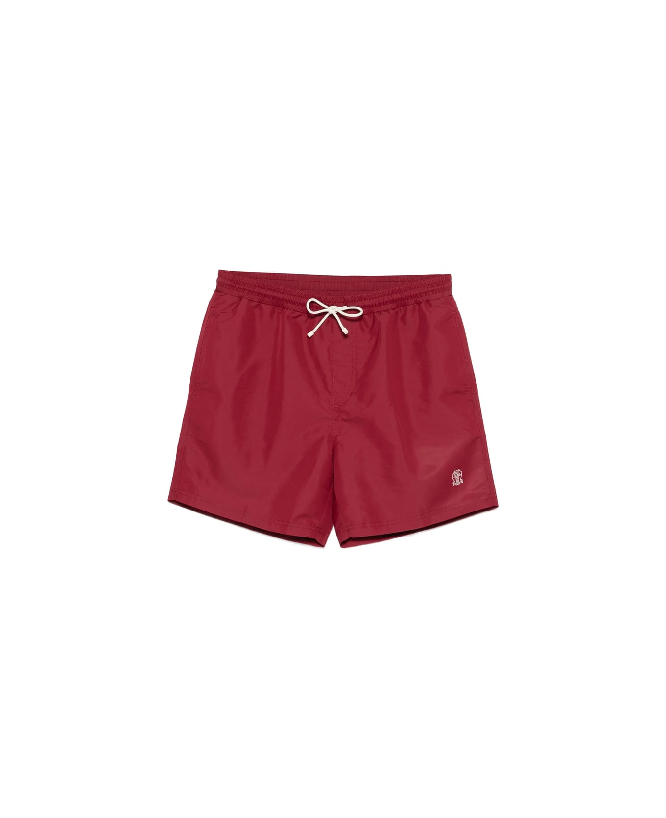 red drawstring fastening logo detail Be mindful to try on swimwear over your own garments.