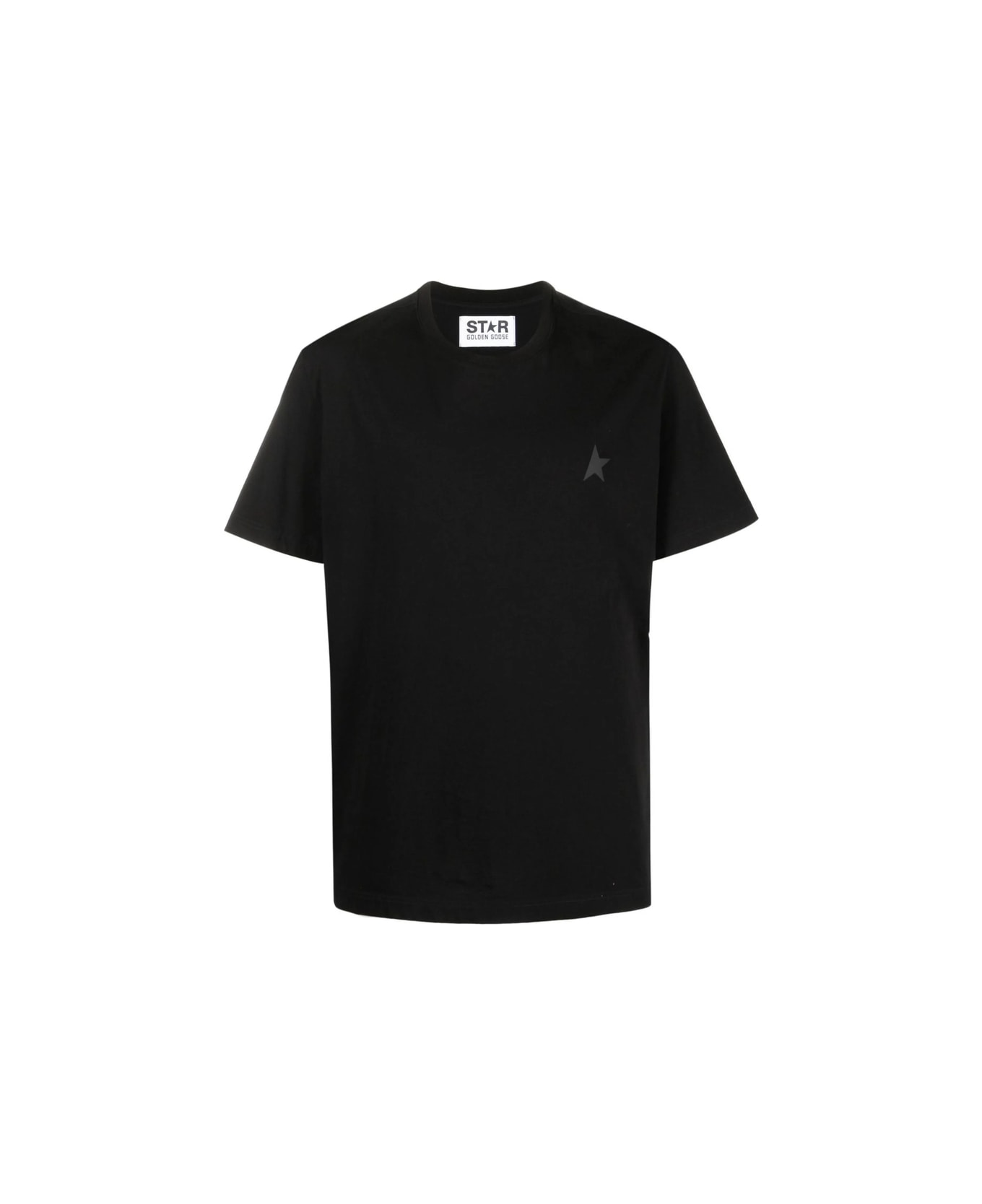 black cotton jersey knit star print crew neck short sleeves straight hem