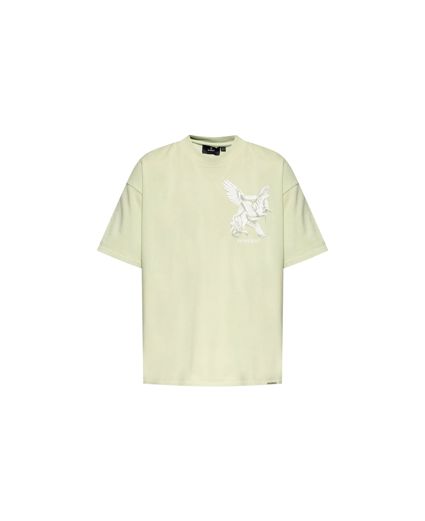 light green crew neck short sleeves graphic print at the chest graphic print to the rear