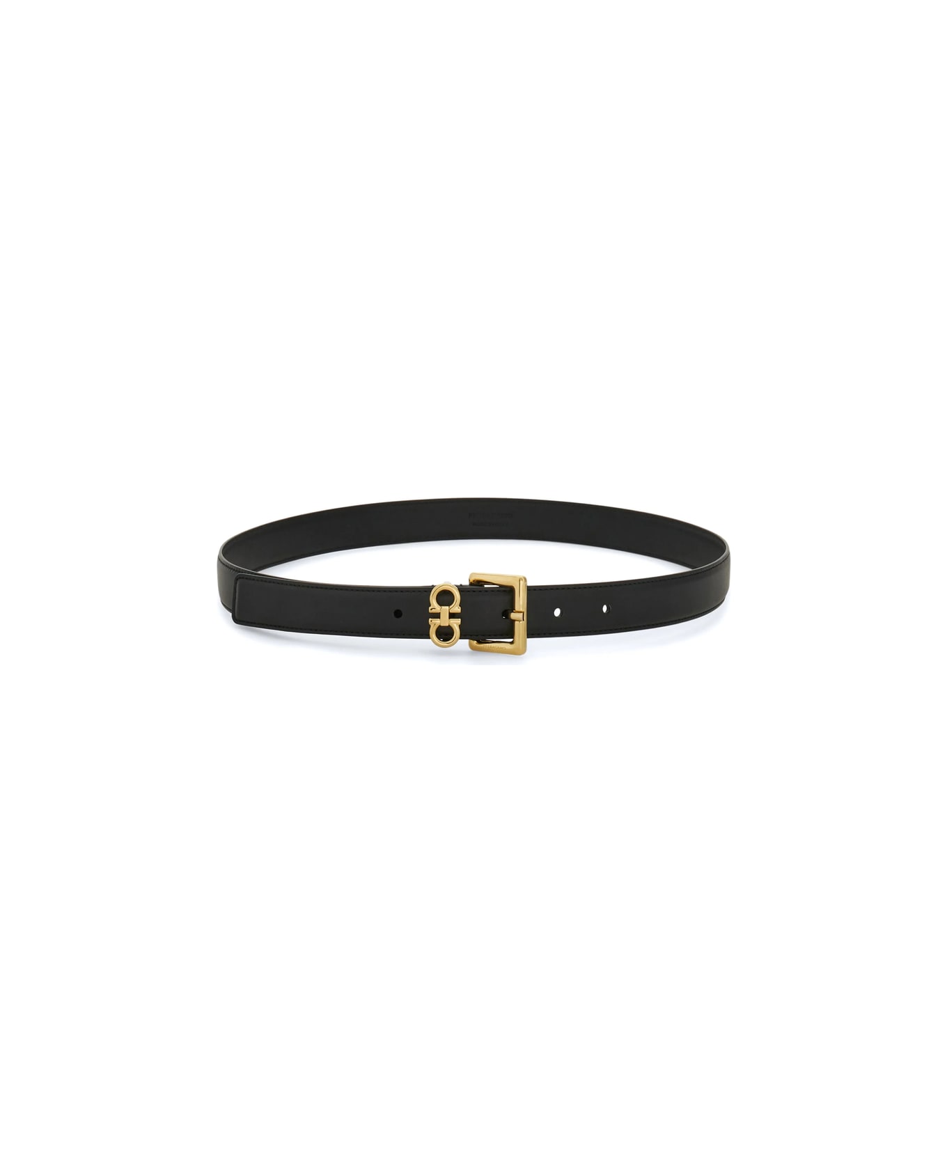 black calf leather smooth grain Gancini plaque front buckle fastening punched holes flat tip adjustable fit