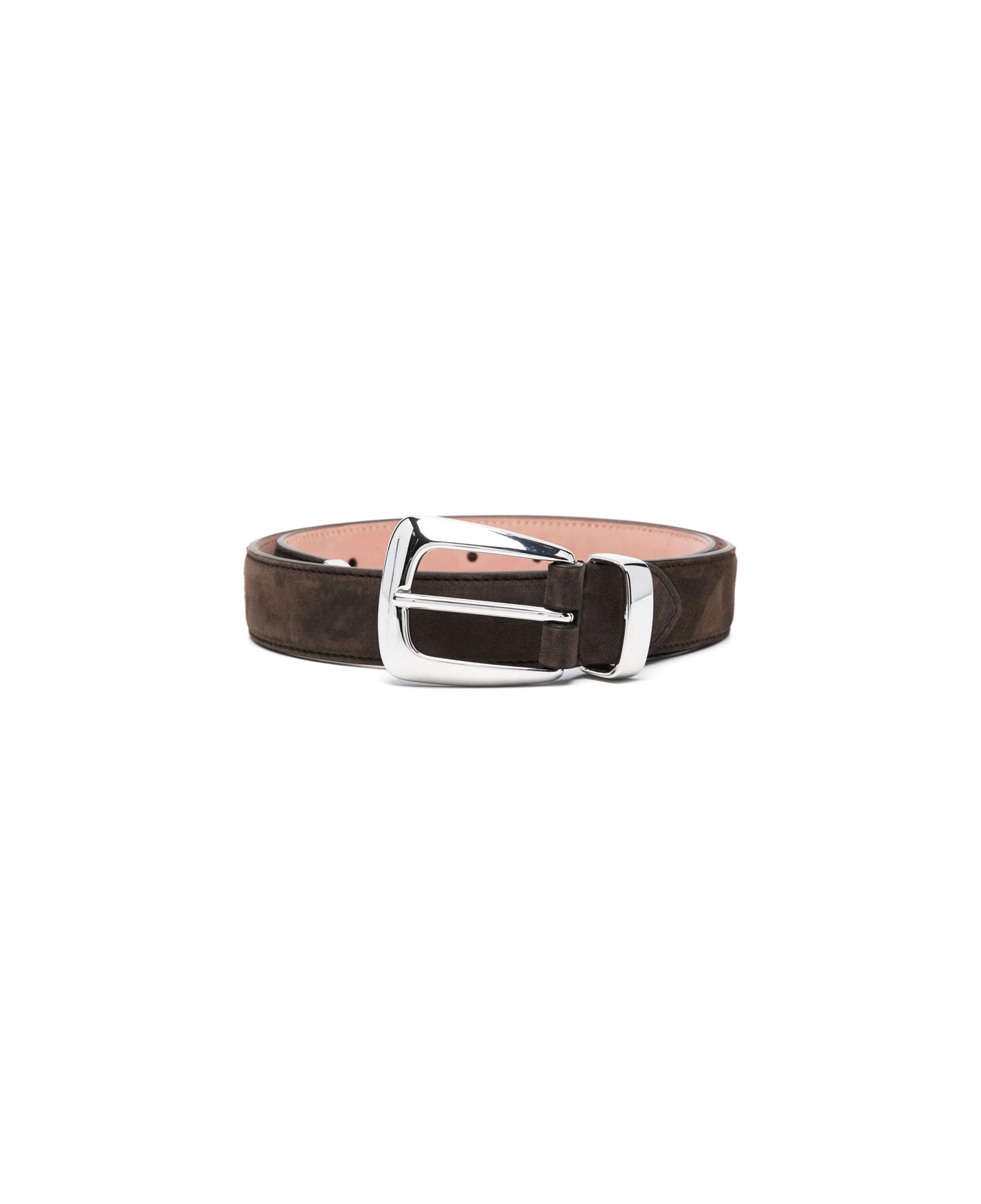 ebano brown calf suede pin-buckle fastening punched holes pointed tip debossed internal logo adjustable fit
