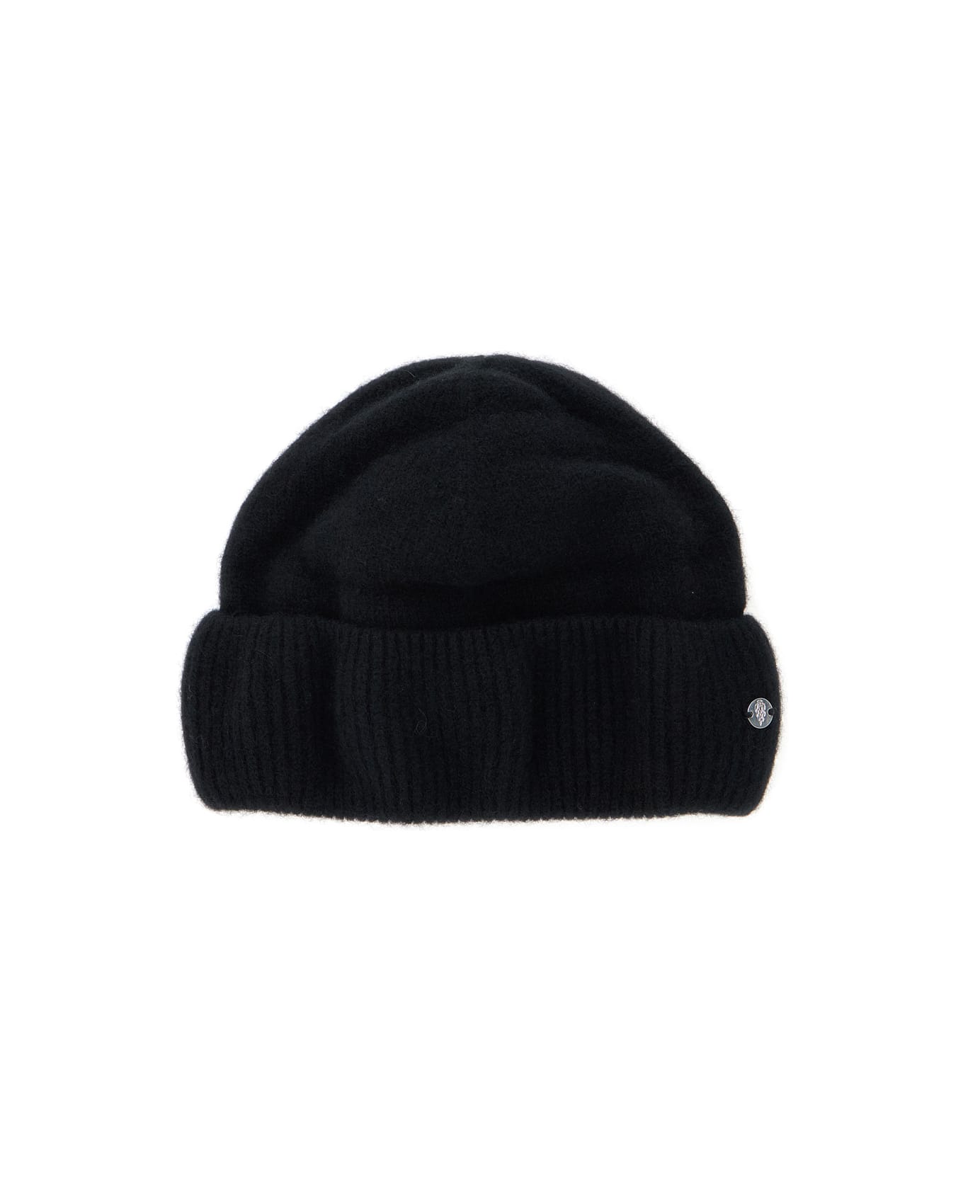 vivian Black Beanie With Logo Plaque Detail On The Front In Cashmere Woman