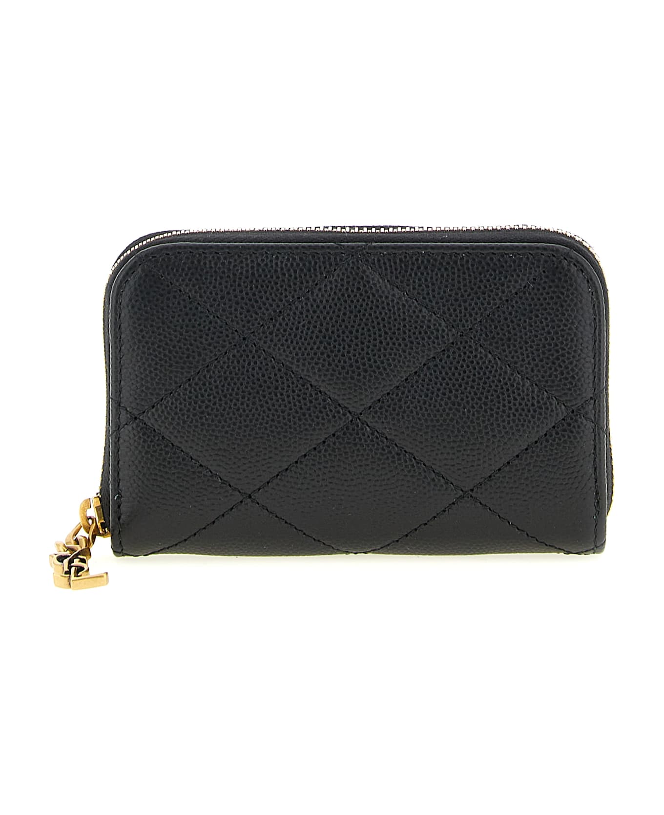 Grain de poudre embossed leather coin purse with quilted check stitching, zip around closure, antiqued metal 'Cassandre Bijoux' logo zip puller.