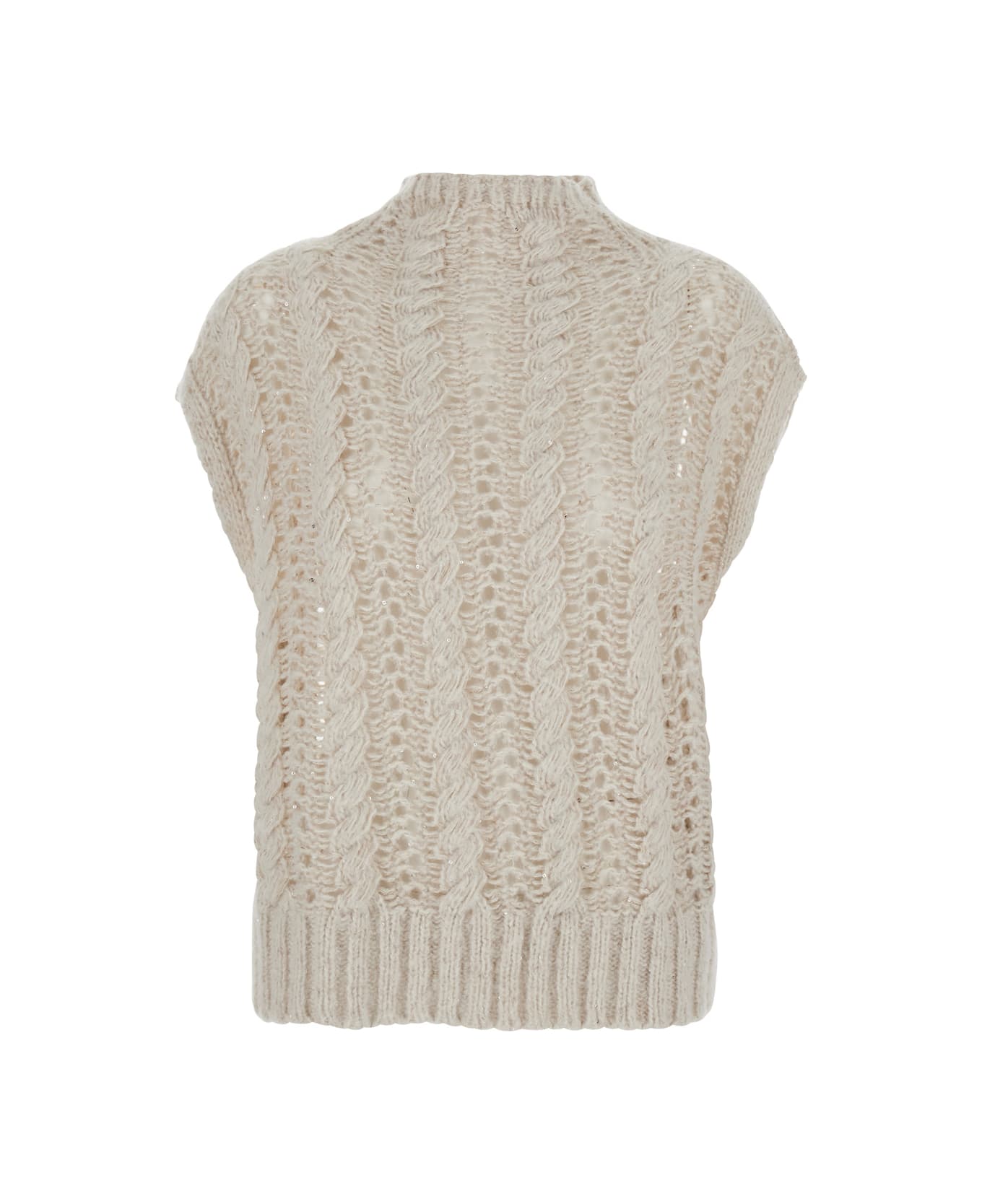 faustina Beige Sleeveless Crewneck Knit Vest In Wool Woman