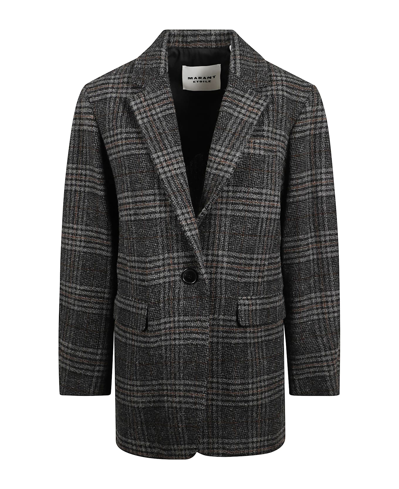 Gray virgin wool jacket by MARANT ETOILE featuring a checked pattern, a tailored collar, a chest pocket, and a button closure.