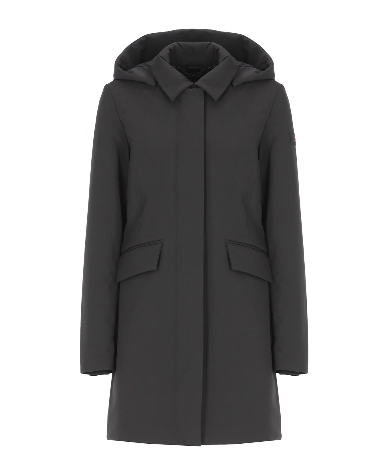 - Peuterey black woman's quilted jacket - Collar - Hood - Long sleeves - Front zip and buttons fastening - Two side flap pockets - Iconic logoed patch at left sleeves