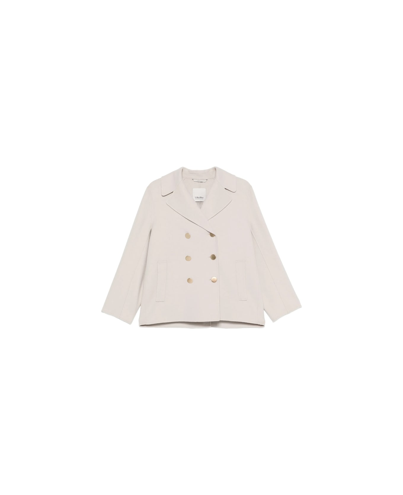 light grey double-breasted gold-tone buttons notched lapels front pockets long sleeves
