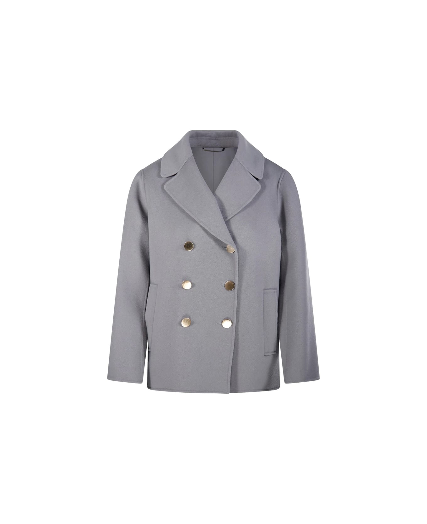 light grey gold-tone buttons notched lapels welt pocket double-breasted fastening