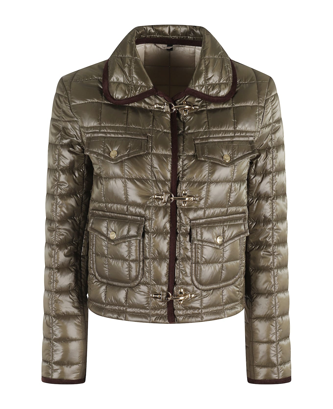 Down jacket - Fay - Short model - Taupe color - Quilted - Four front flap and button pockets - Collar - Brown rope piping - Long sleeves - Front closure with logoed metal frogs.