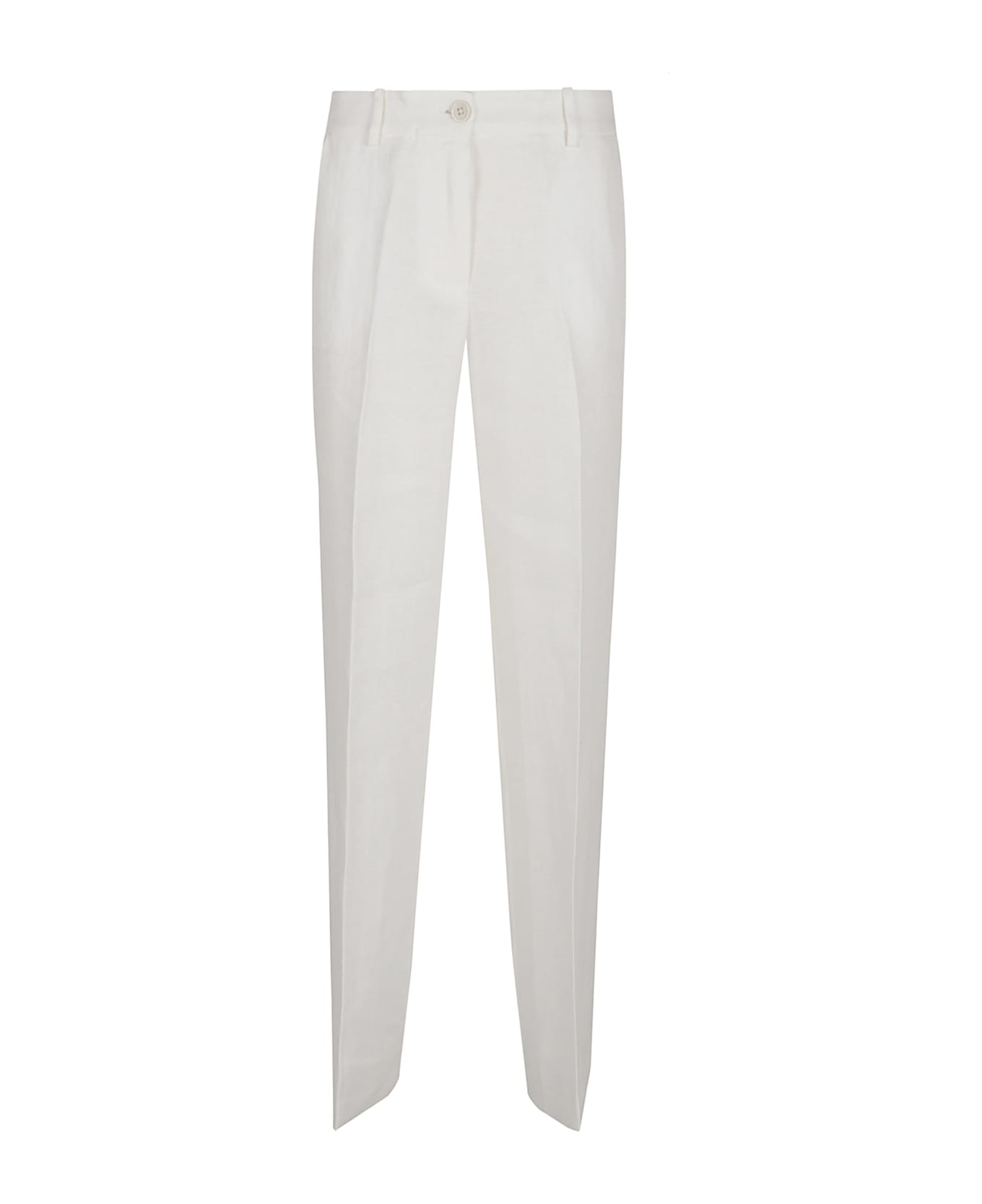 light beige trousers front buttons and zip closure belt loops two diagonal pockets on the sides two welt pockets on the back