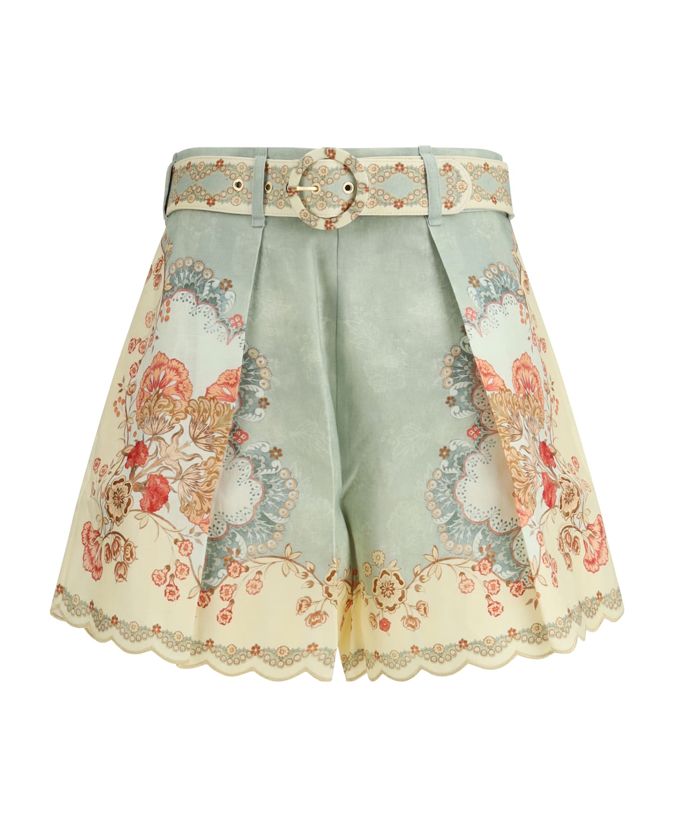 The daylight tuck linen shorts by zimmermann deliver effortless summer elegance. crafted from linen, they feature a high-rise waist that flatters the silhouette and a back zip closure for a clean finish. side welt pockets provide discreet functionality, while the matching linen belt with a covered buckle adds a refined finishing touch.