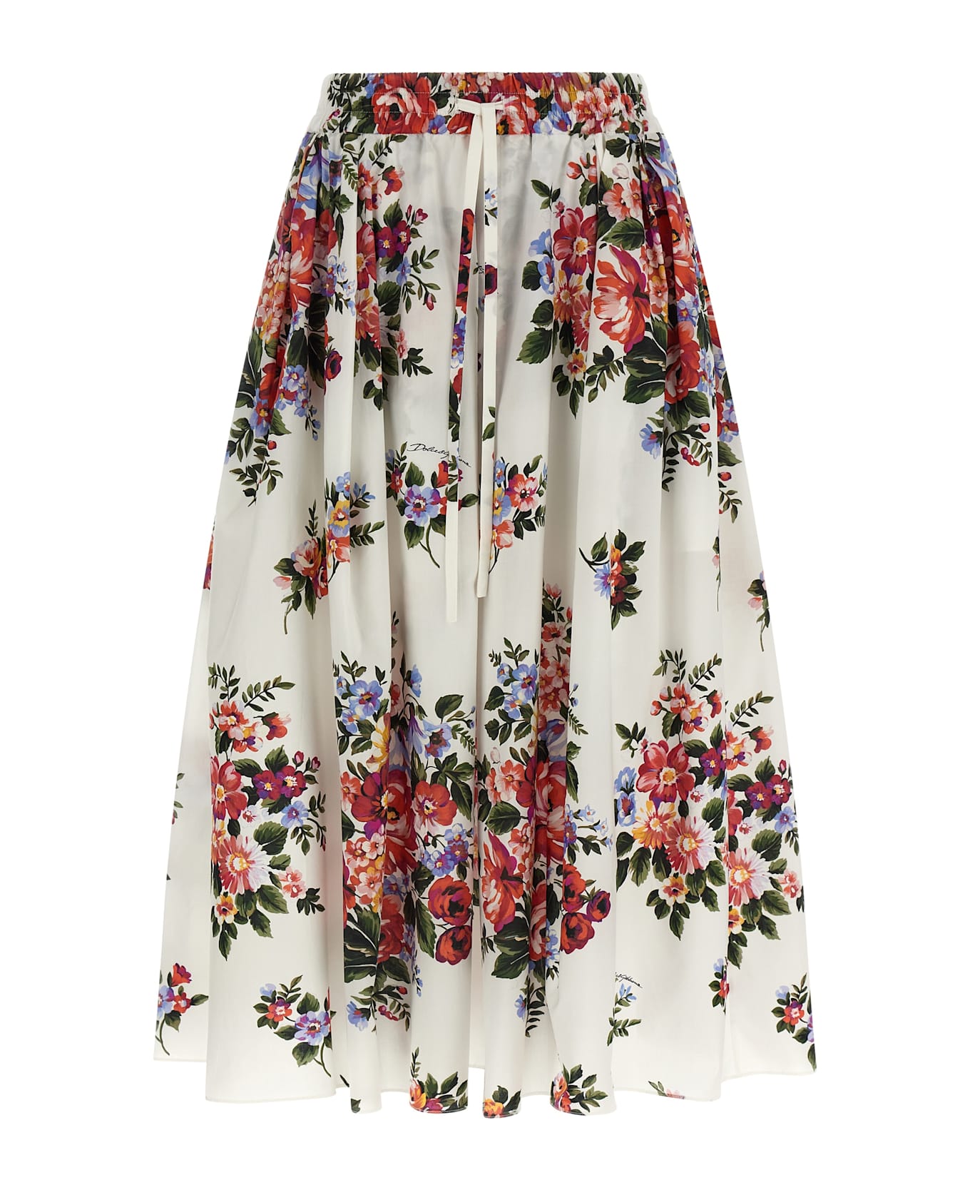 Midi skirt in all-over 'Mazzo di Fiori' print cotton poplin with flared silhouette with pleats, drawstring elastic waistband, unlined. The differences in print placement you might find on this product is a characteristic of Dolce&Gabbana's Handmade products. A peculiarity that makes each garment or accessory unique and exclusive. Composition: 100% cotton