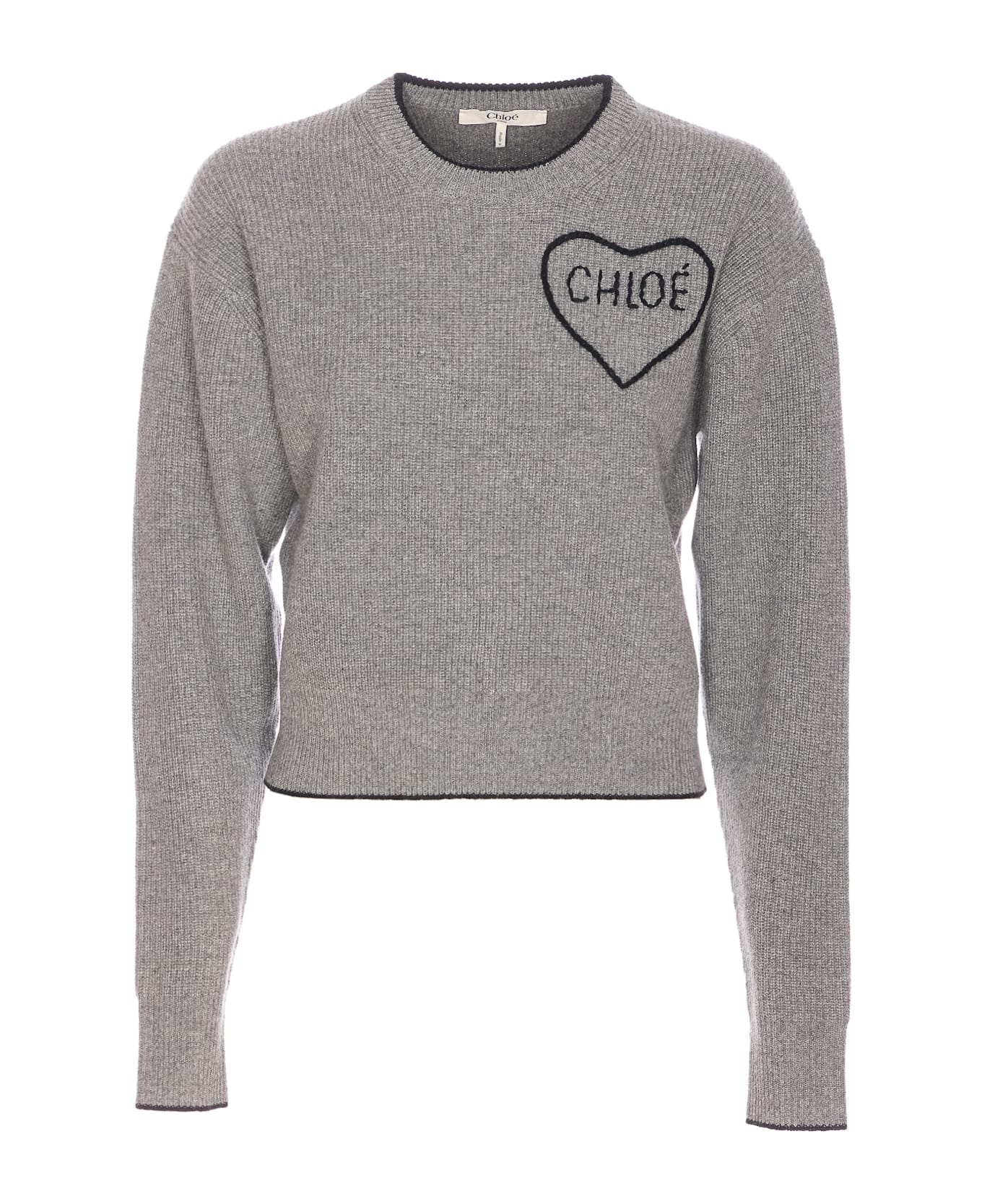 Chloè grey sweater, crewneck, long sleeves, embroidered heart logo on the front Composition: 71% Wool, 29% Wool Cashmere