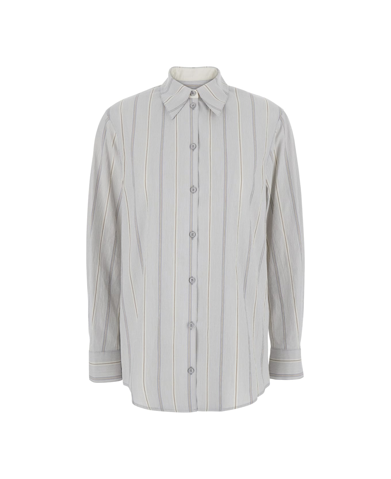 Blue Shirt With Classic Collar And All-over Striped Motif In Cotton Woman