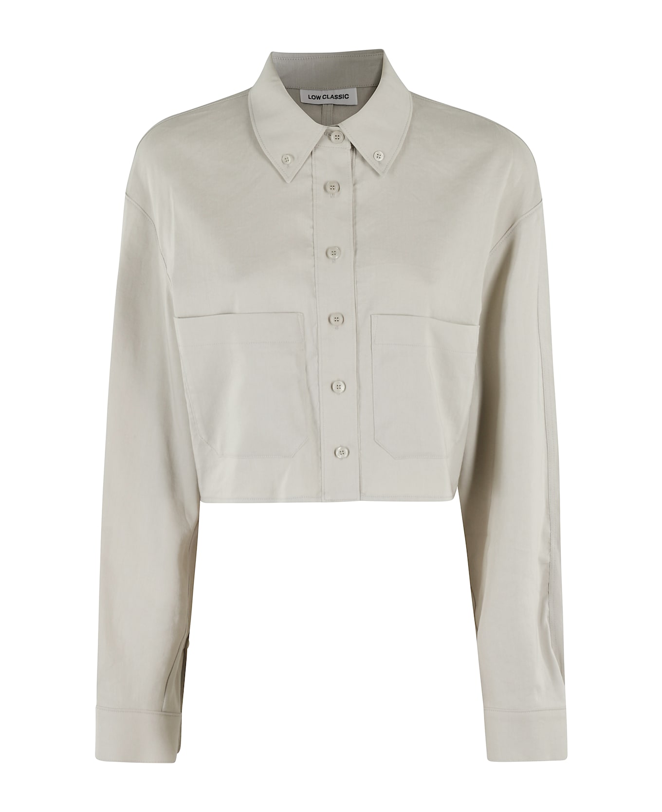 Linen shirt Low Classic Color light khaki Cropped model Long sleeve Central button closure Front pockets