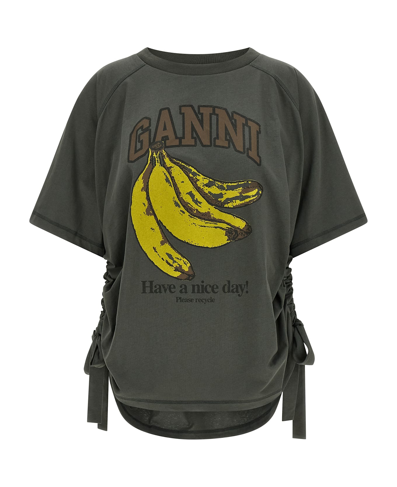 Cotton T-shirt, front 'Grey Banana' graphic print, crew neck, short raglan sleeves, side laces to change the width of the shirt. SUSTAINABLE: This product is made of organic cotton. Composition: 100% organic cotton