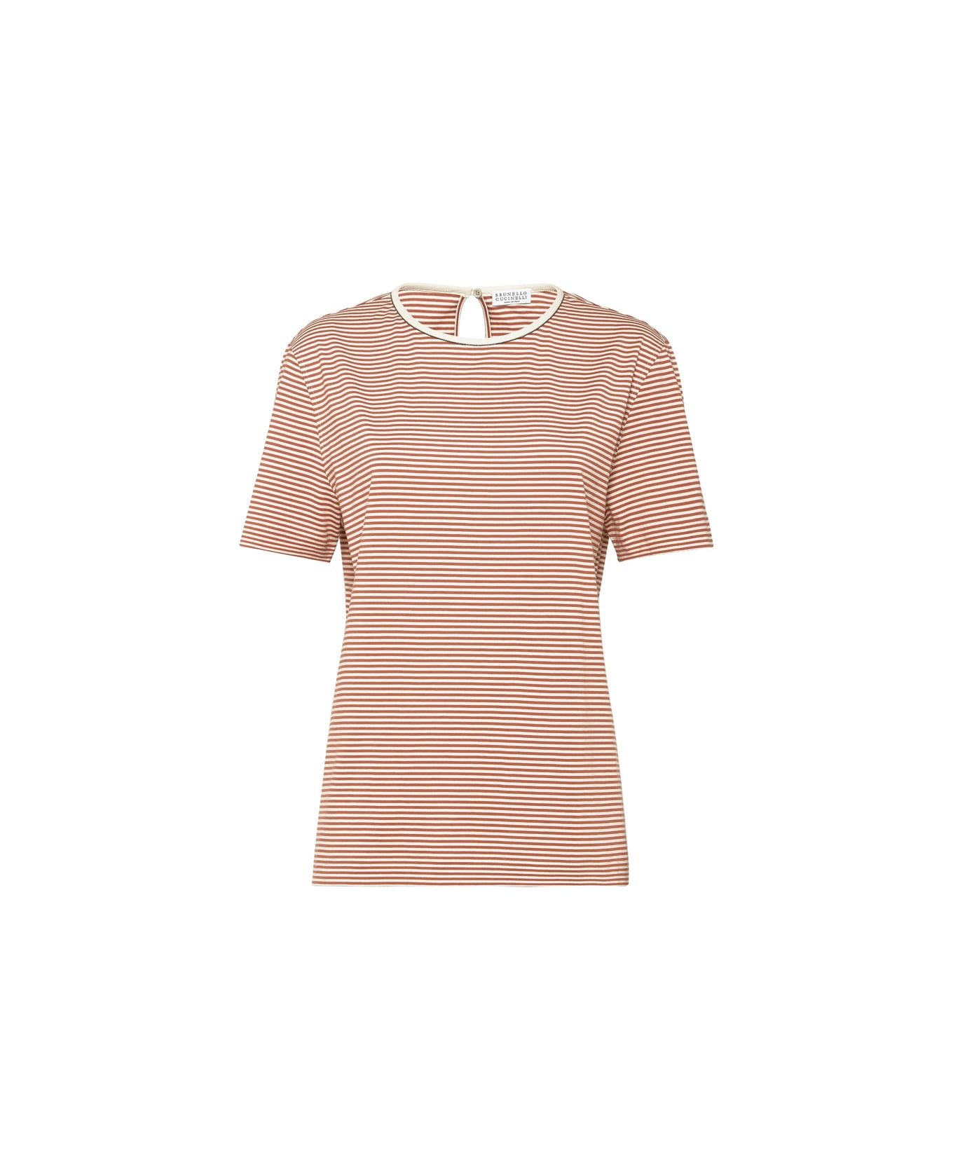 orange single rear button fastening keyhole detail to the rear crew neck short sleeves