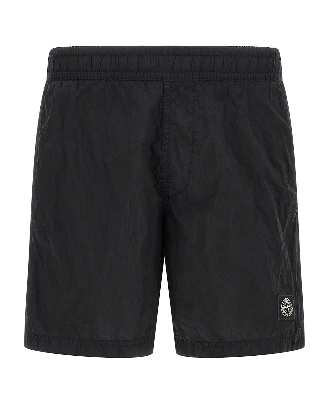 'B100004' swimsuit in garment-dyed Nylon Metal with a wrinkled-effect two-color recipe, 'Compass' logo patch, drawstring elastic waistband, trompe l'oeil flap, pockets, inner briefs in mesh nylon mesh. SUSTAINABLE: This product is made of ECONYL regenerated nylon. ®