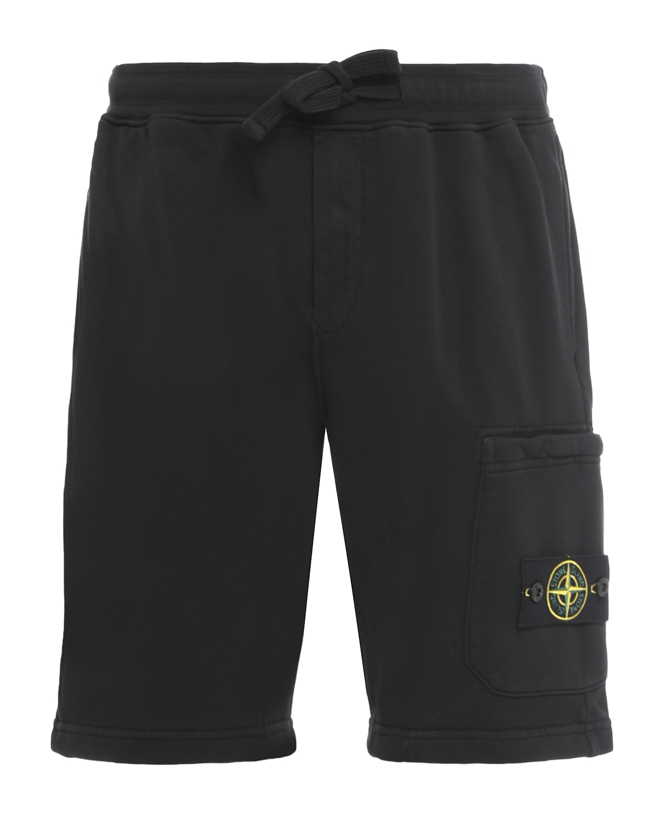 Cotton fleece bermuda shorts made of organic cotton, with a zip pocket on the left thigh, back pocket with flap, elastic drawstring at the waist. flap with zip. garment dyed model. these shorts provide comfort and practicality, perfect for any occasion.