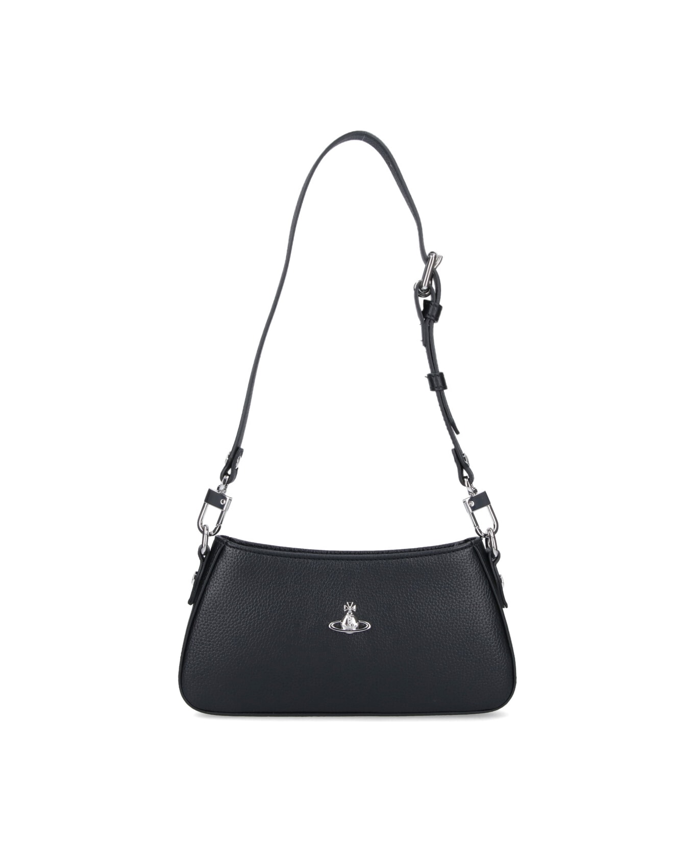 Vivienne Westwood tasha shoulder bag in black fabric, adjustable top handle, silver metal "orb" logo on the front, silver metal hardware details, single main inner compartment. Composition: 100% Polyurethane