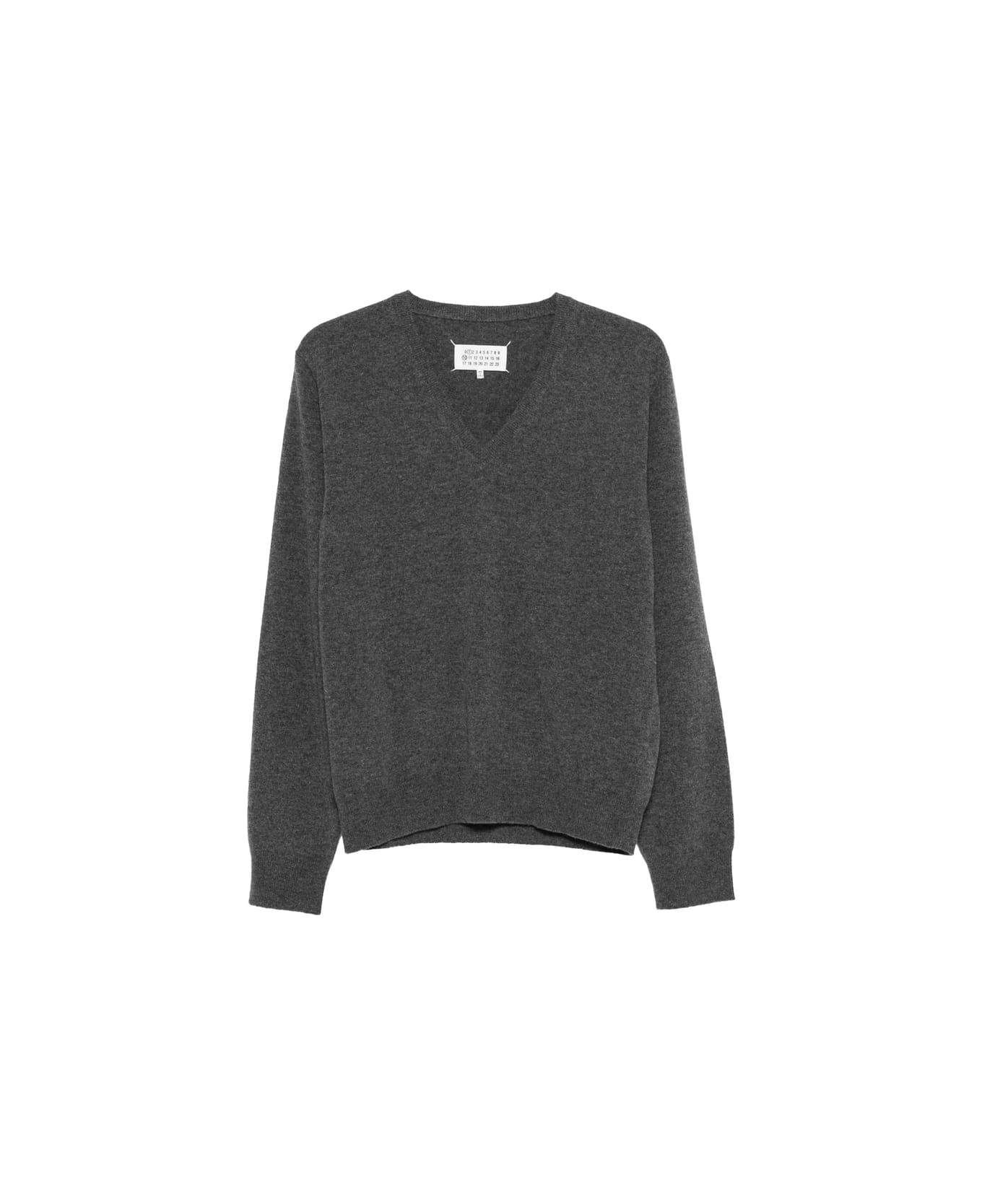 grey V-neck long sleeves ribbed cuffs ribbed hem