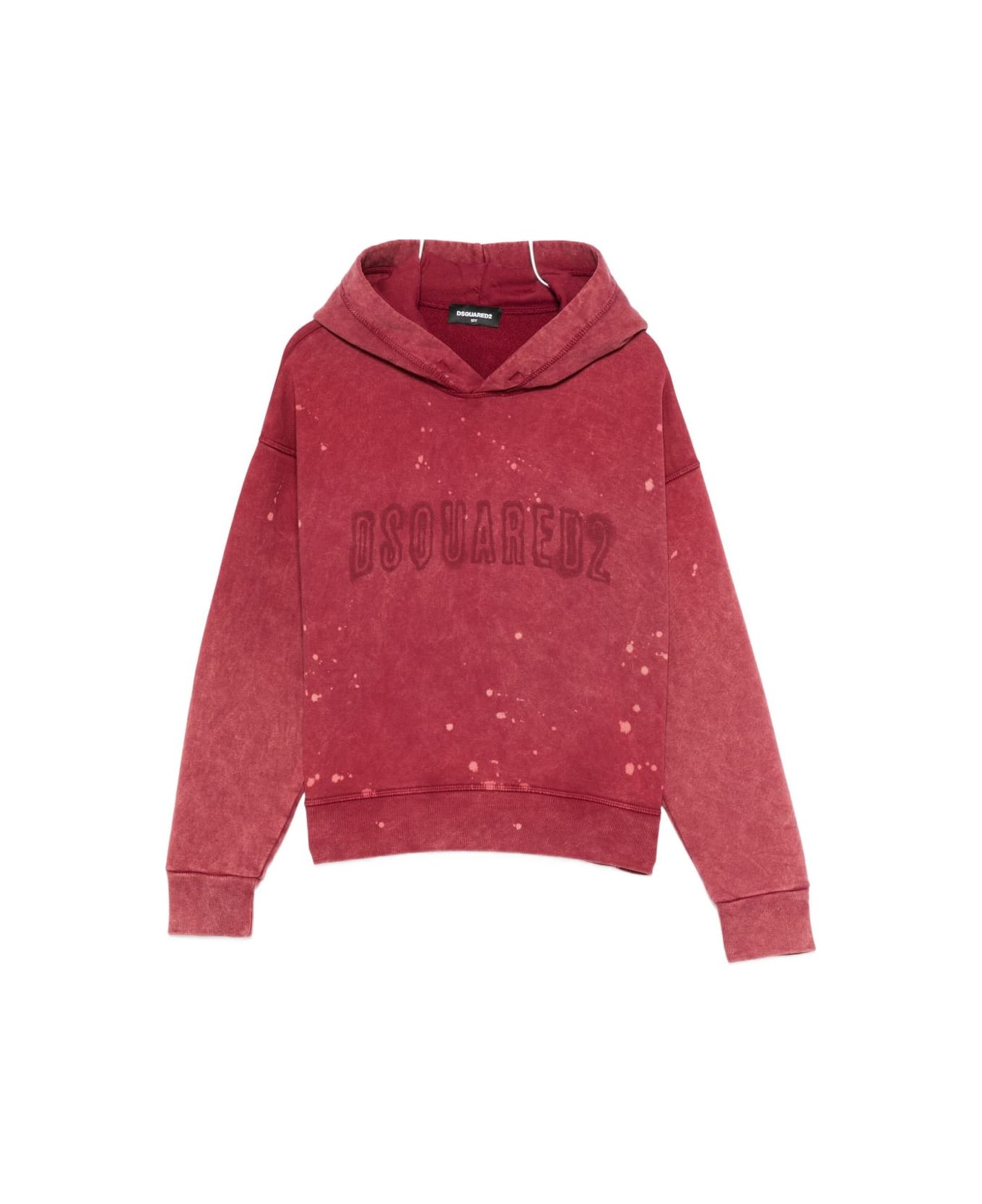 Features Dark red Faded effect Logo motif Drawstring hood Long sleeves Composition 100% cotton