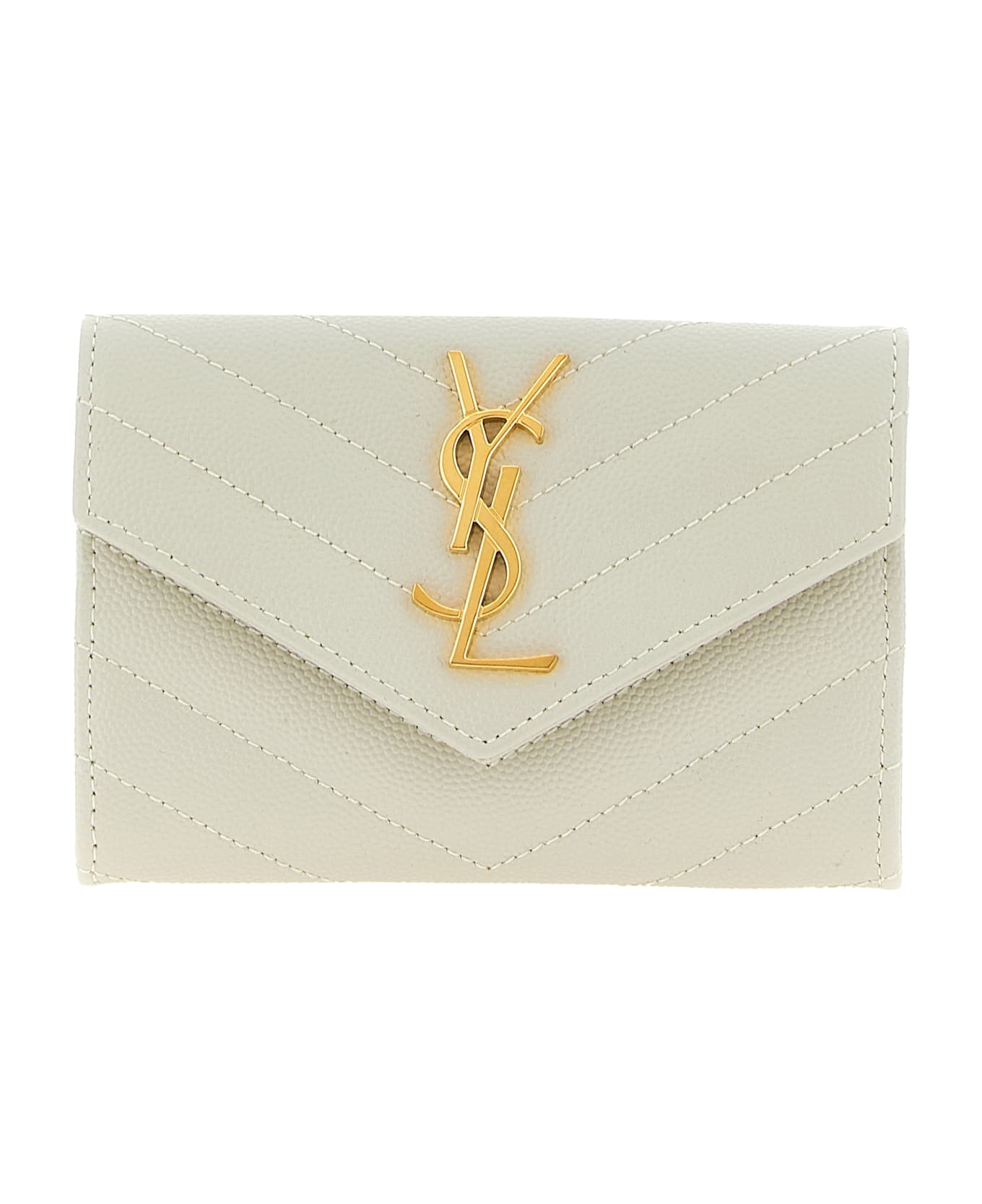 Small 'Envelope' wallet in matelassé grain de poudre leather, flap closure with snap button and antiqued metal Cassandre logo on the front. Composition: 100% calfskin leather (Bos Taurus)
