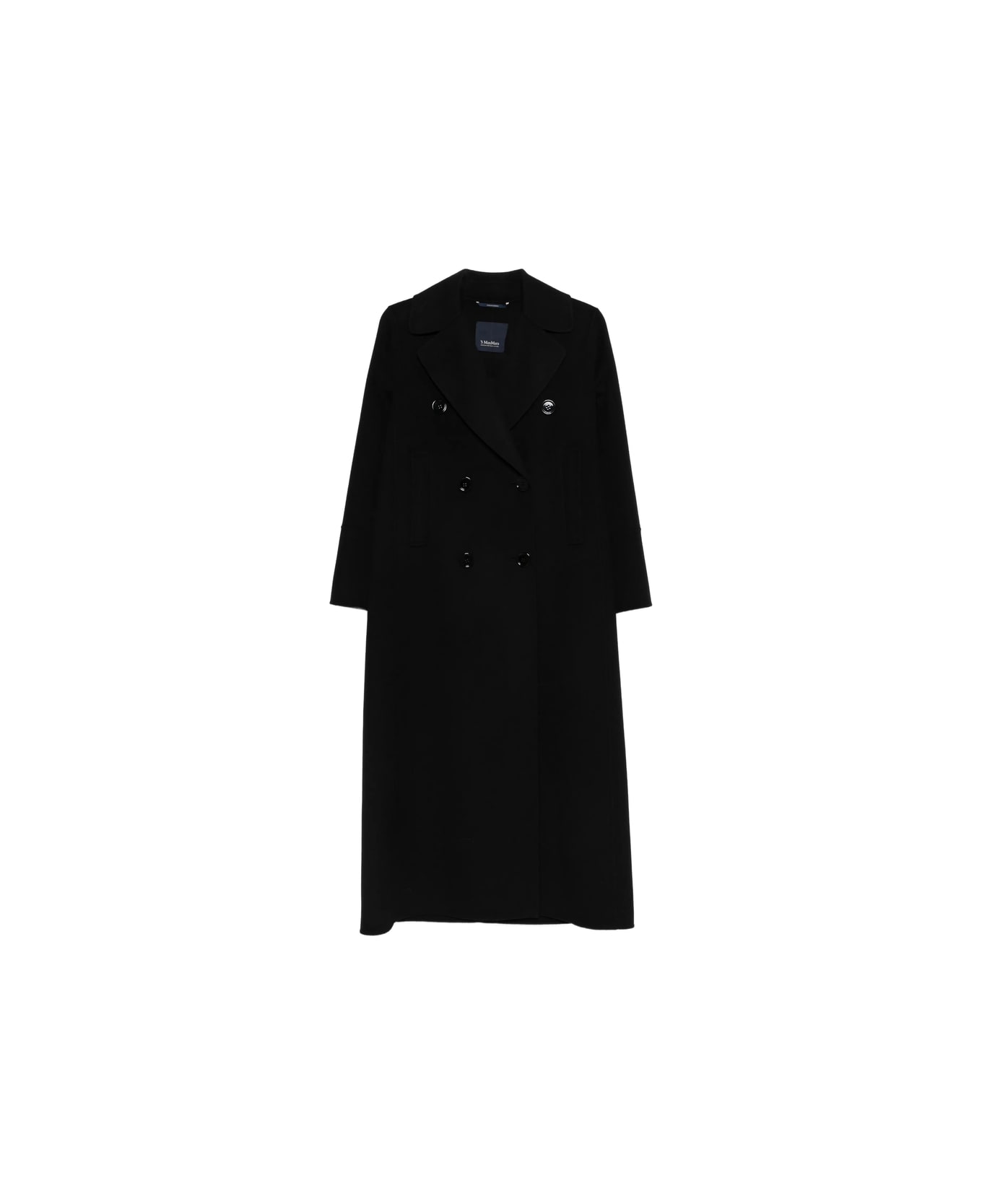 black double-breasted button fastening notched lapels long sleeves straight hem