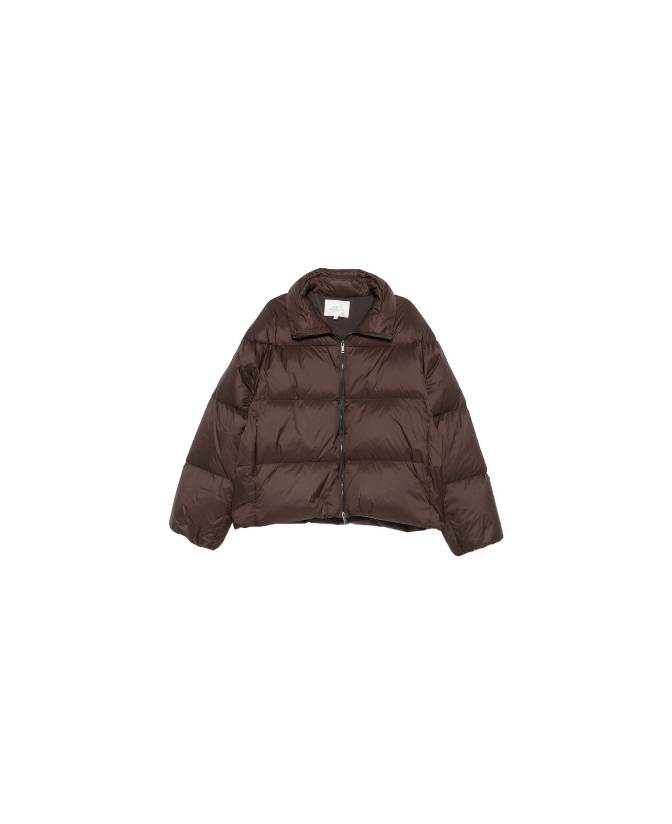 chocolate brown high neck front zip fastening quilted long sleeves straight hem