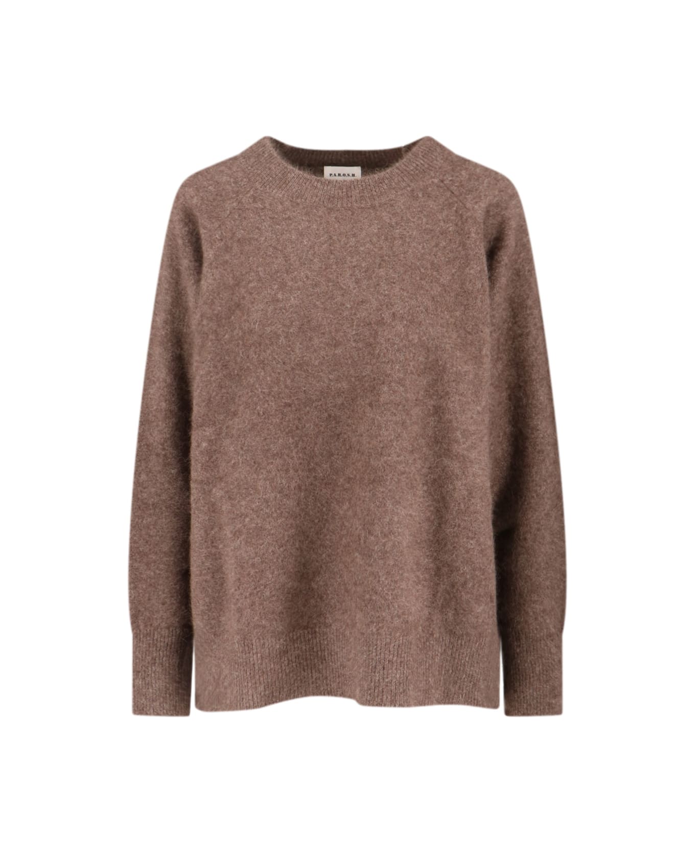 P. A. R. O. S. H crewneck sweater in brown fur with ribbed trim, straight hem.