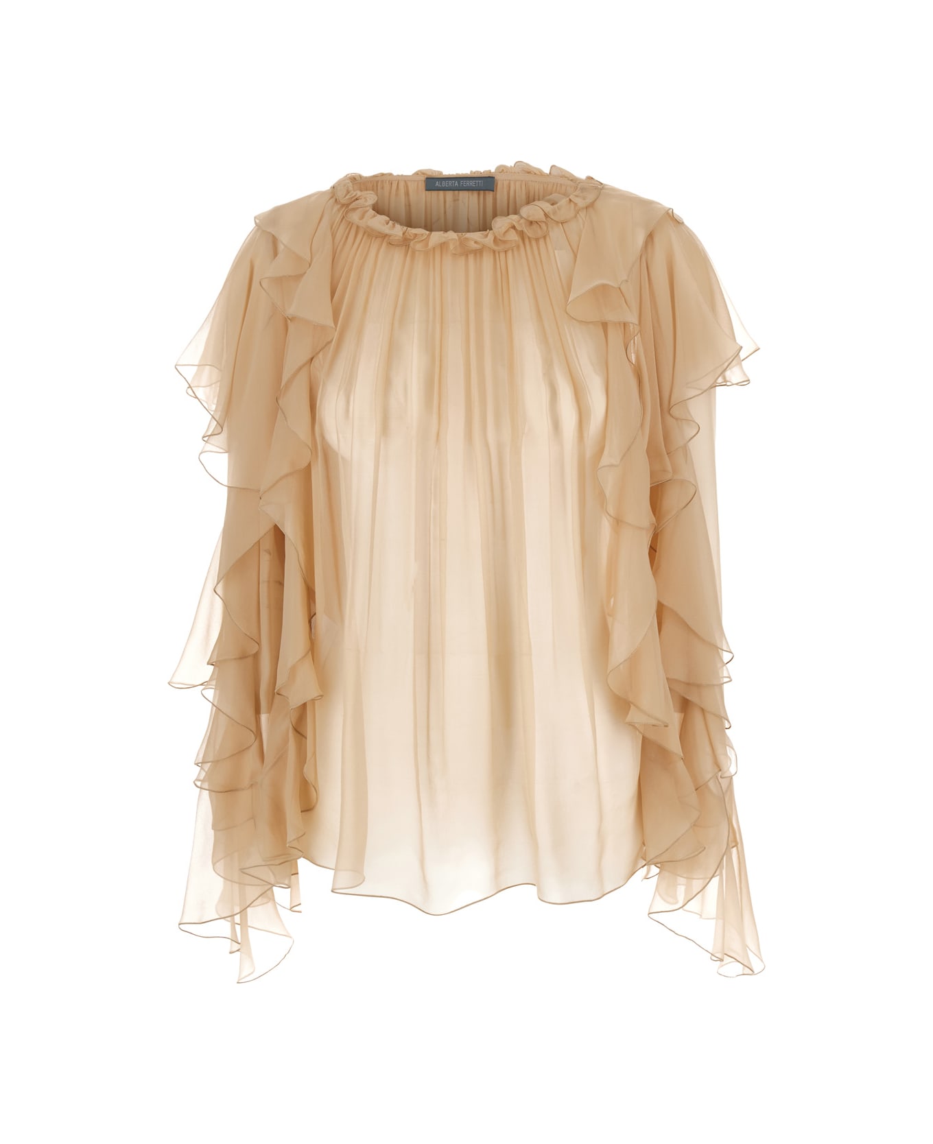 Beige Shirt With Ruffle Detail In Silk Chiffon Woman