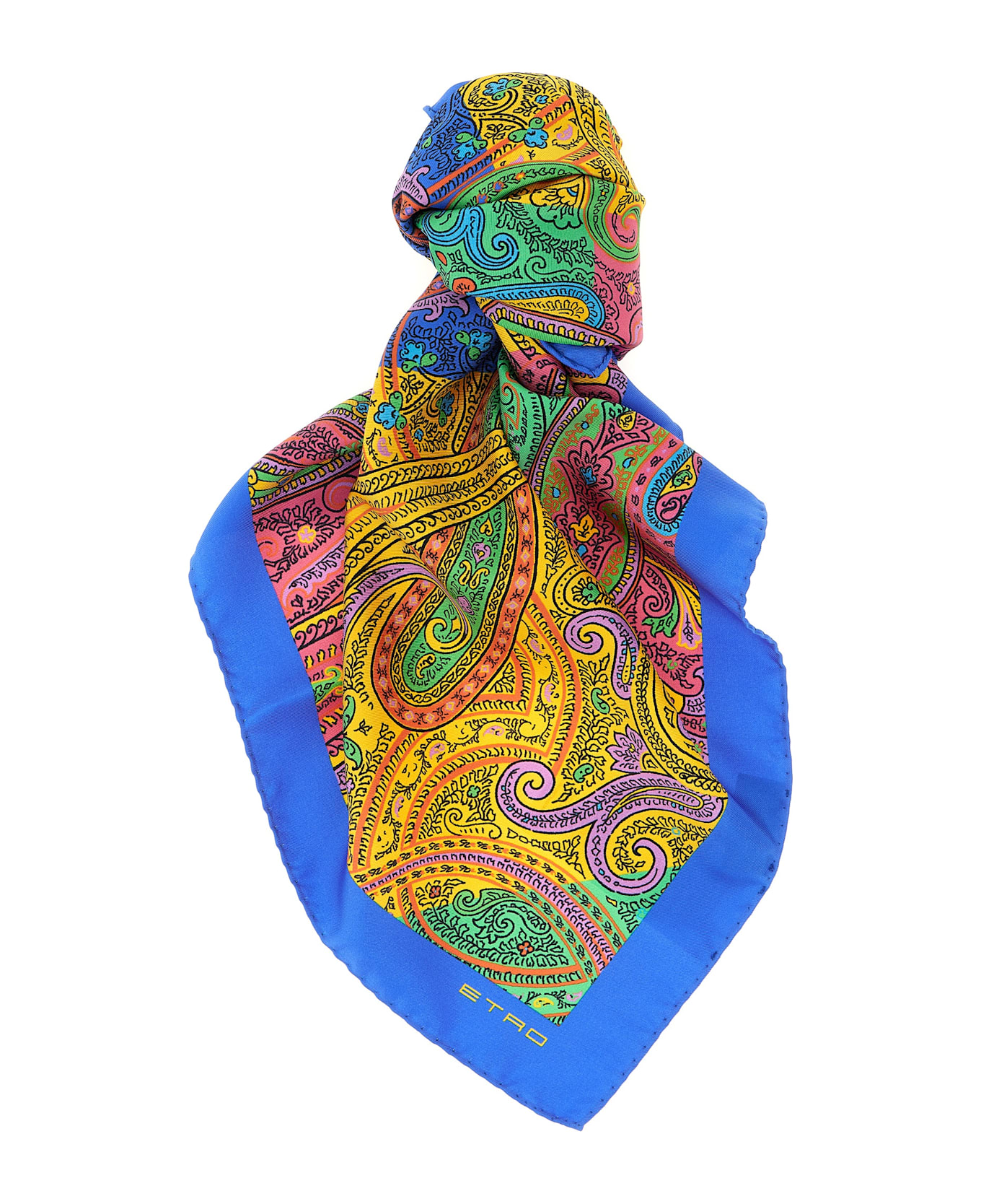 Pure silk twill scarf with geometric floral paisley pattern. Composition: 100% silk