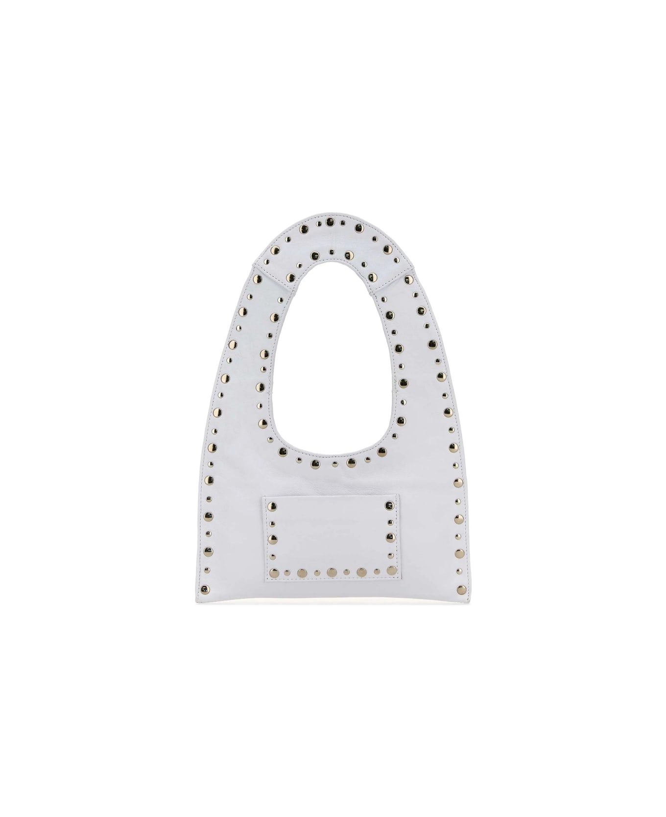 white calf leather smooth grain concealed magnetic fastening single top handle silver-tone stud embellishment silver-tone logo plaque slip pocket to the rear main compartment debossed internal logo internal slip pocket twill lining