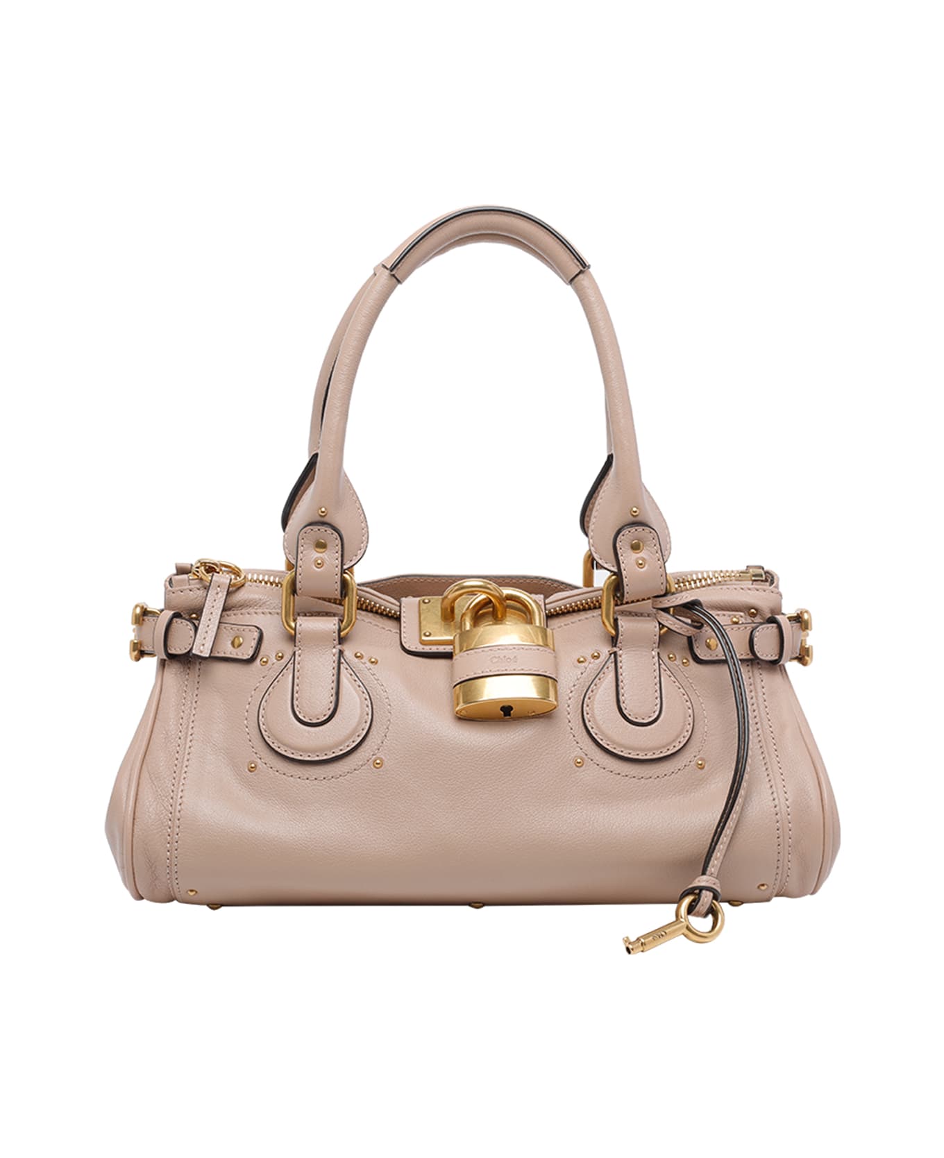 Chloe' earthy pink Paddington handbag, zip closure, inner zipped pocket, 2 external open pockets, 2 handles, frontal maxi lock detail