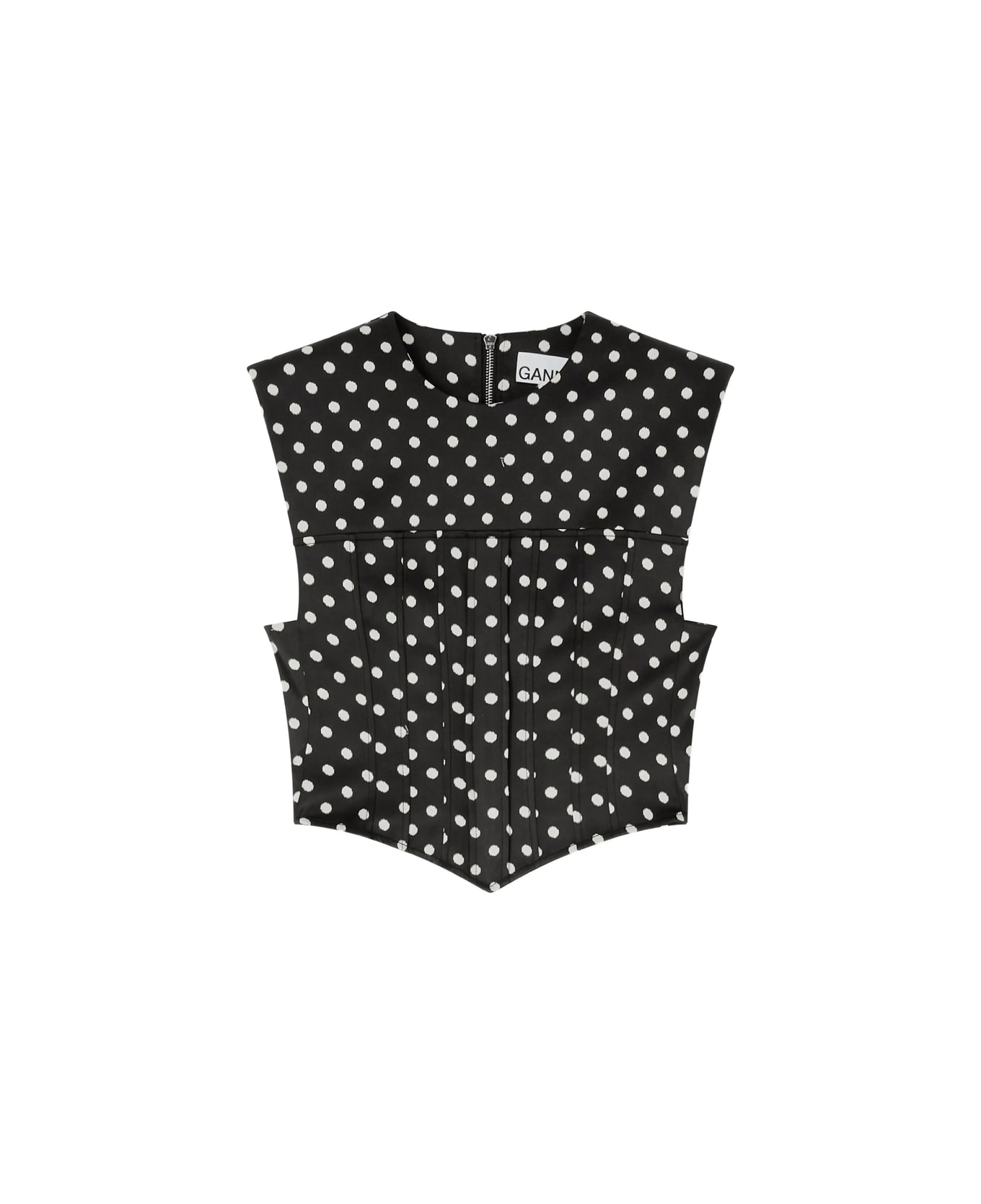 black polka dot pattern zip fastening sleeveless panelled construction