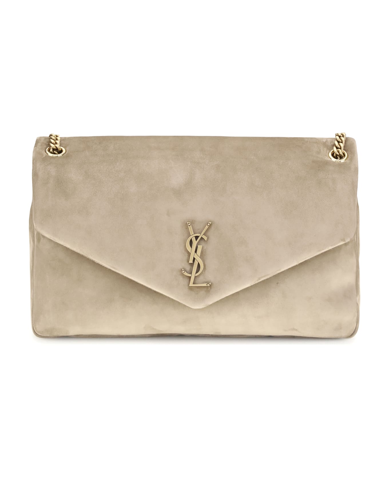 The saint laurent large calypso shoulder bag is an elegant and refined accessory, perfect for those seeking a mix of style and functionality. made with a grosgrain lining, this bag is distinguished by its golden chain handle that adds a touch of luxury and modernity. the brand's iconic logo stands out on the front, further embellishing the design. inside, a zippered pocket allows you to better organize your personal items, making this bag not only a symbol of style but also a reliable companion for everyday life.