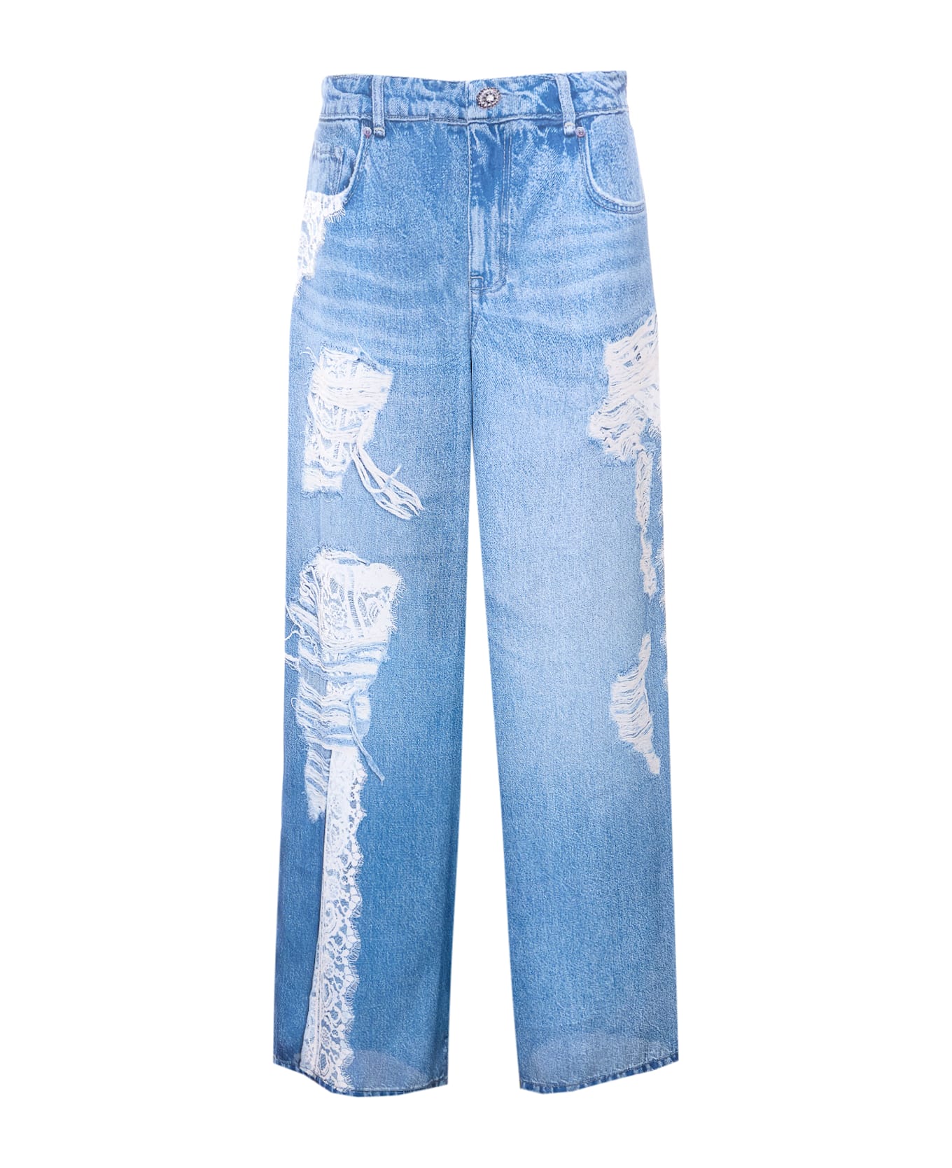 Liu Jo light blue pants with denim effect, elasticized on waist, Trompe l'Oeil print, lateral zip closure