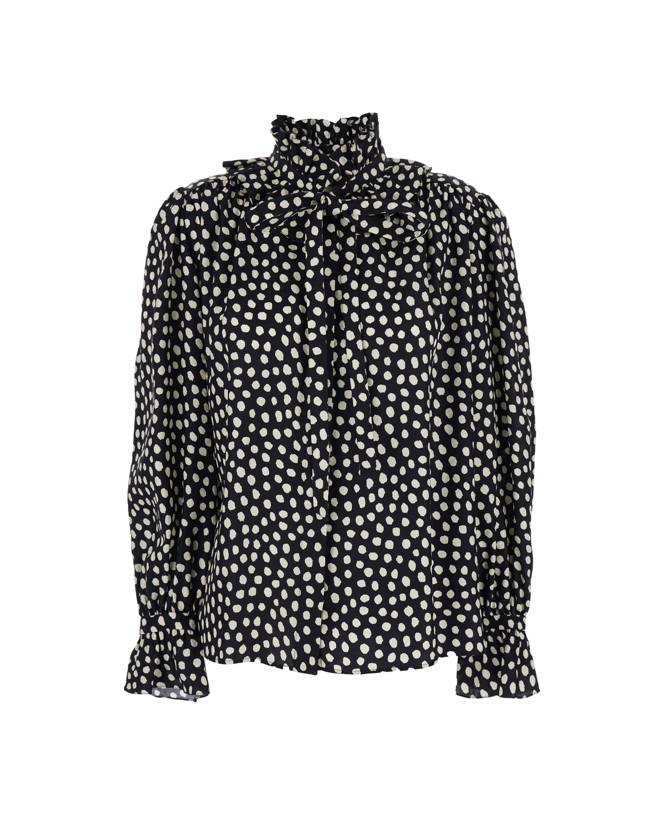 Black Blouse With High Neck And All-over Polka Dot Motif In Silk Woman
