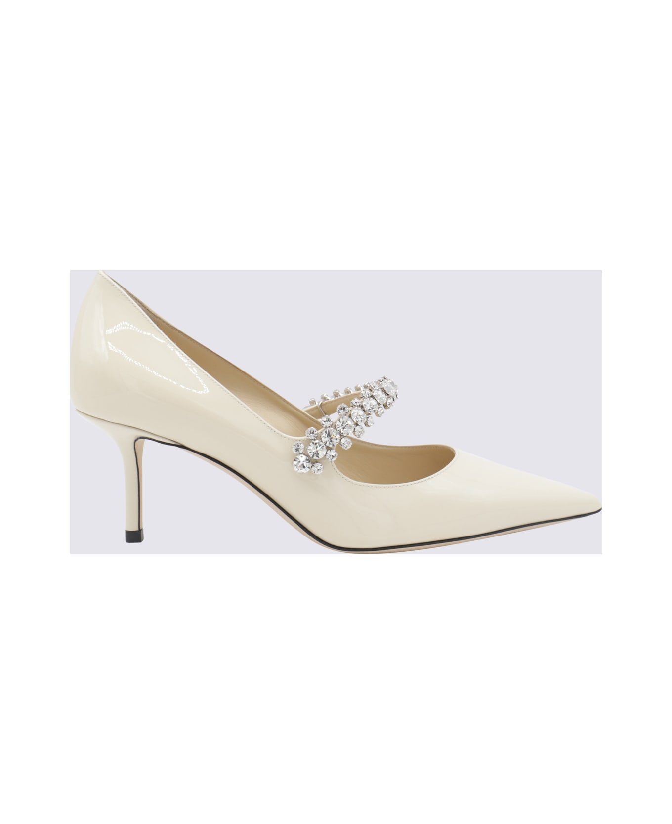 White leather pumps from Jimmy Choo featuring pointed toe, slip-on style and crystals embellishment. Composition: _cover, 100% Le Sole, 100% Le