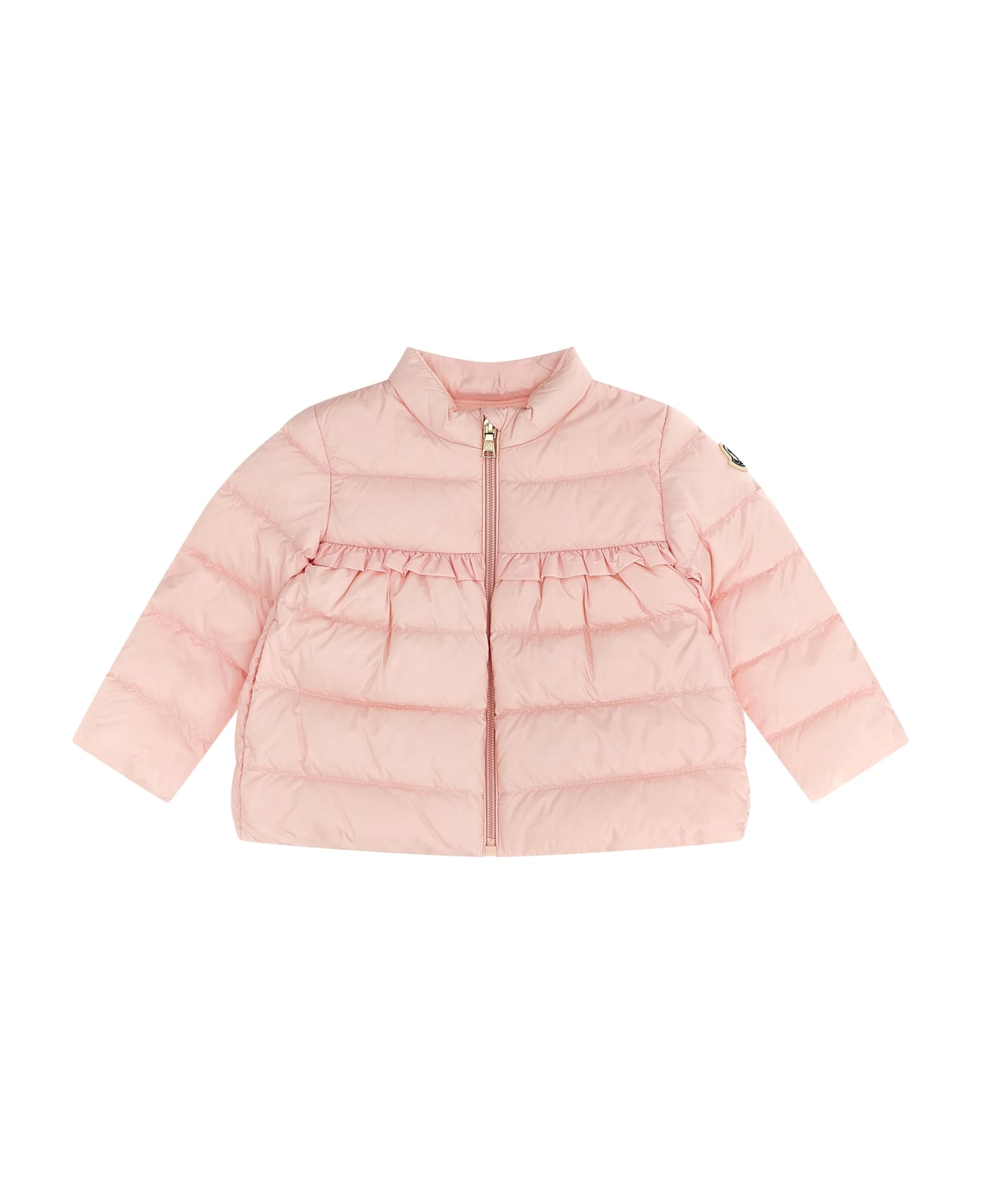 KIDS 'Nazife' down jacket in quilted technical fabric with goose down padding with ruffled detail on the front and back, high neck, front zip closure, pockets, long sleeves with elastic cuffs and a felt logo patch.